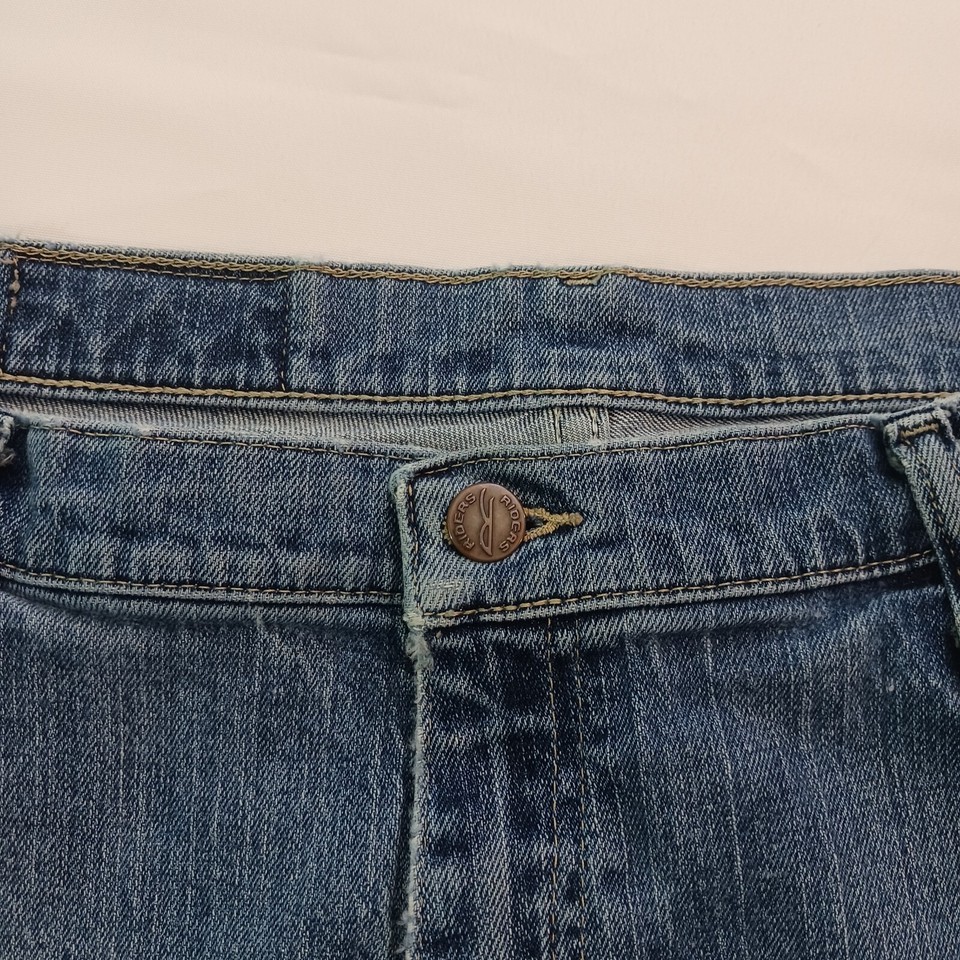 These plus-size jeans have a waist size of 38 inches and an inseam of 28.5 inches, making them a great choice for any occasion. The Denim Riders logo accents the jeans, adding a touch of style to your outfit. Whether you're a fan of 80s or 90s fashion or just looking for a versatile addition to your wardrobe, these jeans are a must-have.