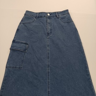 Denim Wear Women's Blue Cotton Blend Rear Slit Denim Cargo Skirt Size Medium
