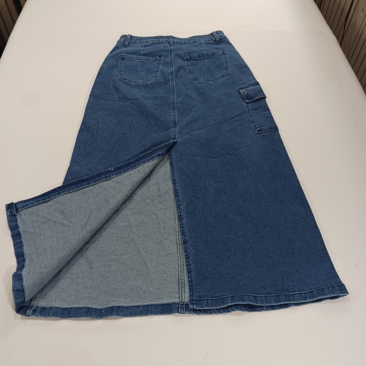 • Denim Wear Women's Blue Cotton Blend Rear Slit Denim Cargo Skirt Size Medium image 15