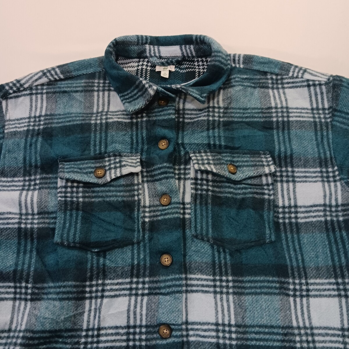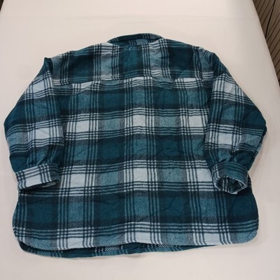 The Dip RN#29360 Women's Green Flannel Plaid Button Up Fleece Shirt Jacket in size 2X is a stylish and cozy outerwear piece perfect for the winter and fall seasons. Made from polyester with a fleece lining, this jacket features a classic collared neckline and 3/4 sleeves, making it a versatile choice for casual occasions. The green plaid pattern adds a touch of charm, while the button closure and regular fit ensure comfort and ease of movement. Machine washable for easy care, this jacket from Dip is a must-have for any woman's wardrobe.
