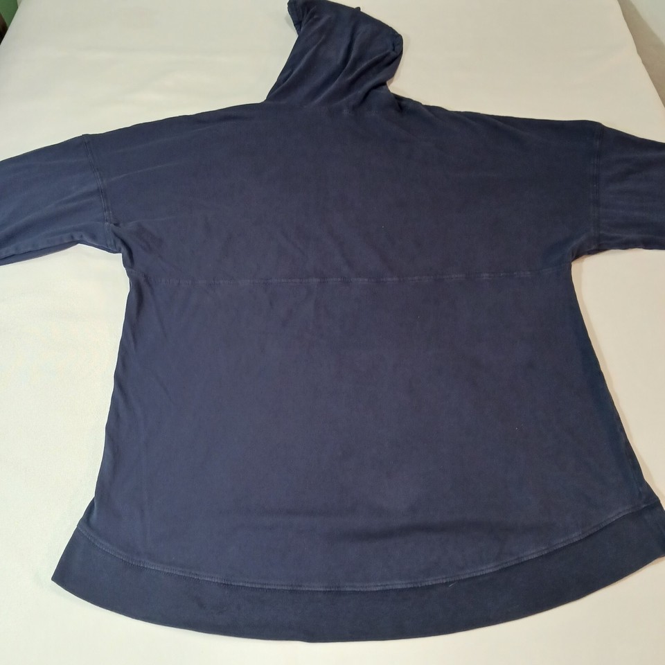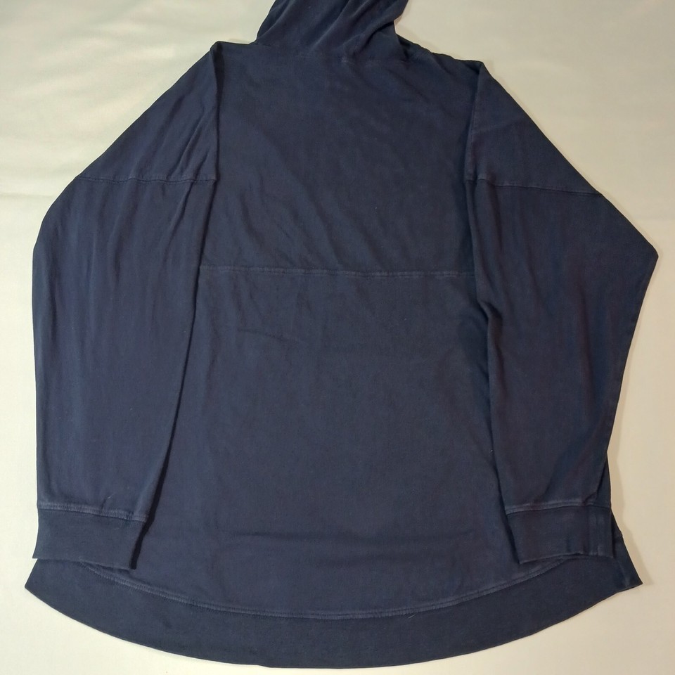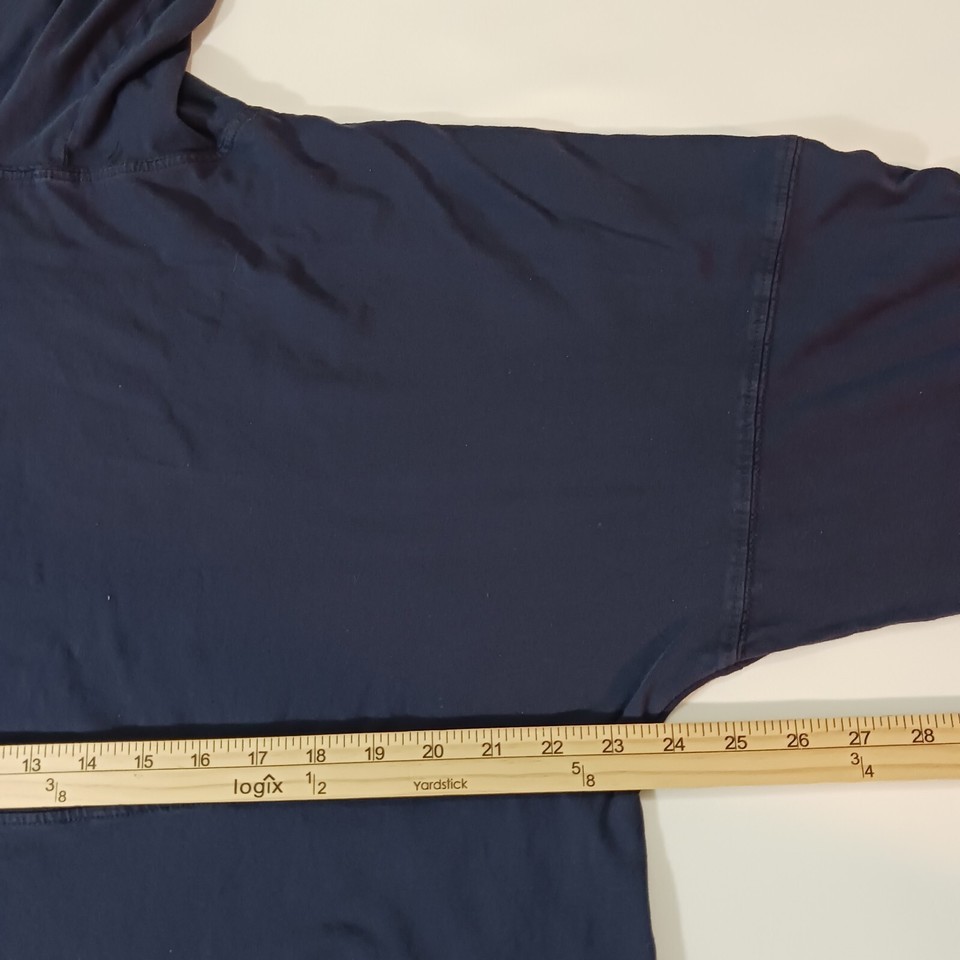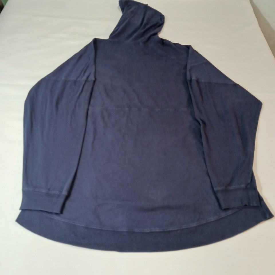 This is a Discovery Cove men's blue hoodie sweatshirt in regular size with a solid pattern. It features a drawstring closure, long sleeves, and a pullover style suitable for all seasons. Made of polyester and cotton blend, this unisex adult sweatshirt has a measured chest size of 48 inches. Perfect for casual wear, this sweatshirt combines comfort and style for a versatile addition to any wardrobe.