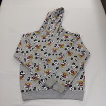 The Disney Mickey Mouse Youth Medium Hoodie in Gray is a stylish and comfortable pullover sweatshirt featuring an all-over print of Mickey Mouse. Made from a blend of polyester and cotton, this hoodie is machine washable and suitable for various occasions such as travel, activewear, and casual wear. With a hooded neckline, long sleeves, and zip closure, this hoodie is perfect for both boys and girls who are fans of the beloved Disney character. It also has pockets for added convenience and is designed for all seasons, making it a versatile and fun addition to any young Disney fan's wardrobe.