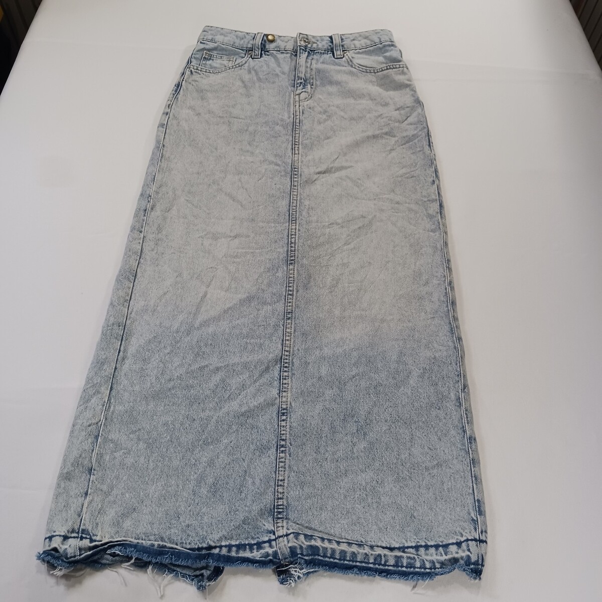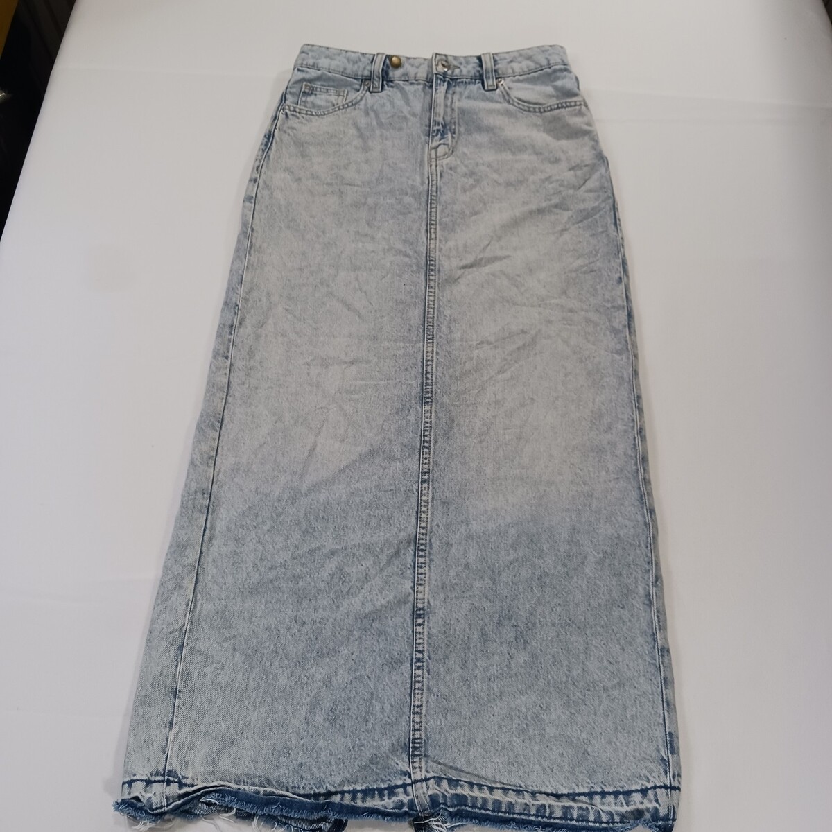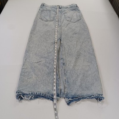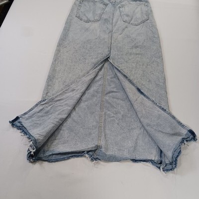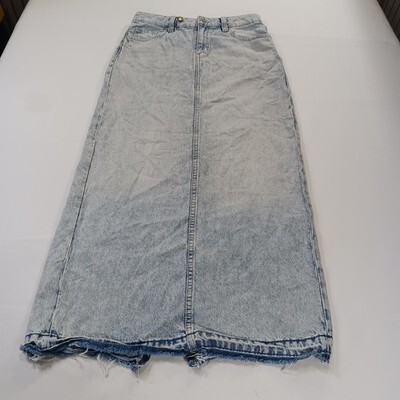 The H&M Women's Blue Cotton Rear Slit Denim Skirt in size 4 is a stylish and versatile piece perfect for any season. Made from durable cotton denim, this long A-line skirt features a solid blue color with a low/mid rise and a zip closure. The rear slit adds a touch of sophistication, making it a great option for both casual and dressy occasions. With its classic cowgirl character and timeless accents like buttons and pockets, this skirt is a must-have for any fashion-forward woman's wardrobe.