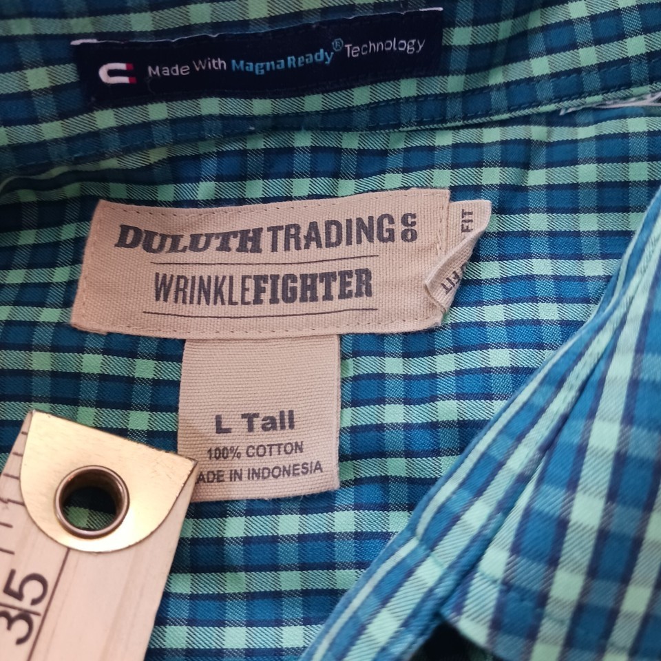 • Duluth Trading Co Shirt Men's Green Plaid Cotton Shirt Wrinkle Fighter Sz L Tall image 15