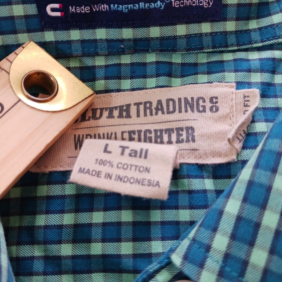 • Duluth Trading Co Shirt Men's Green Plaid Cotton Shirt Wrinkle Fighter Sz L Tall image 13