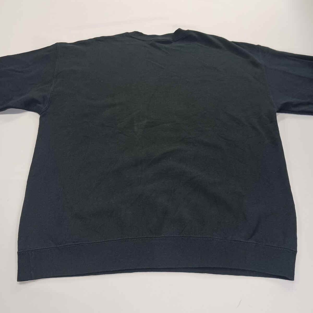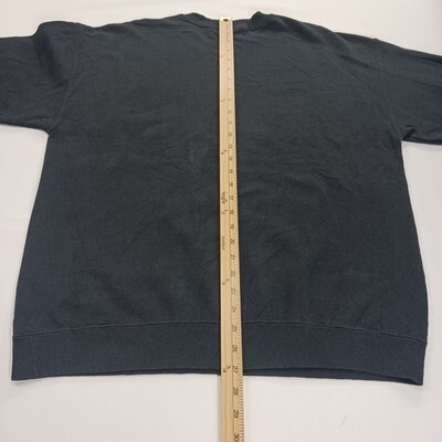 The product is a men's black long sleeve pullover graphic sweatshirt with a chest measurement of 46 inches. It is a regular fit sweatshirt with a solid black color and a pullover style. The sweatshirt is crafted for men and features long sleeves, making it a versatile and comfortable activewear option for everyday wear.