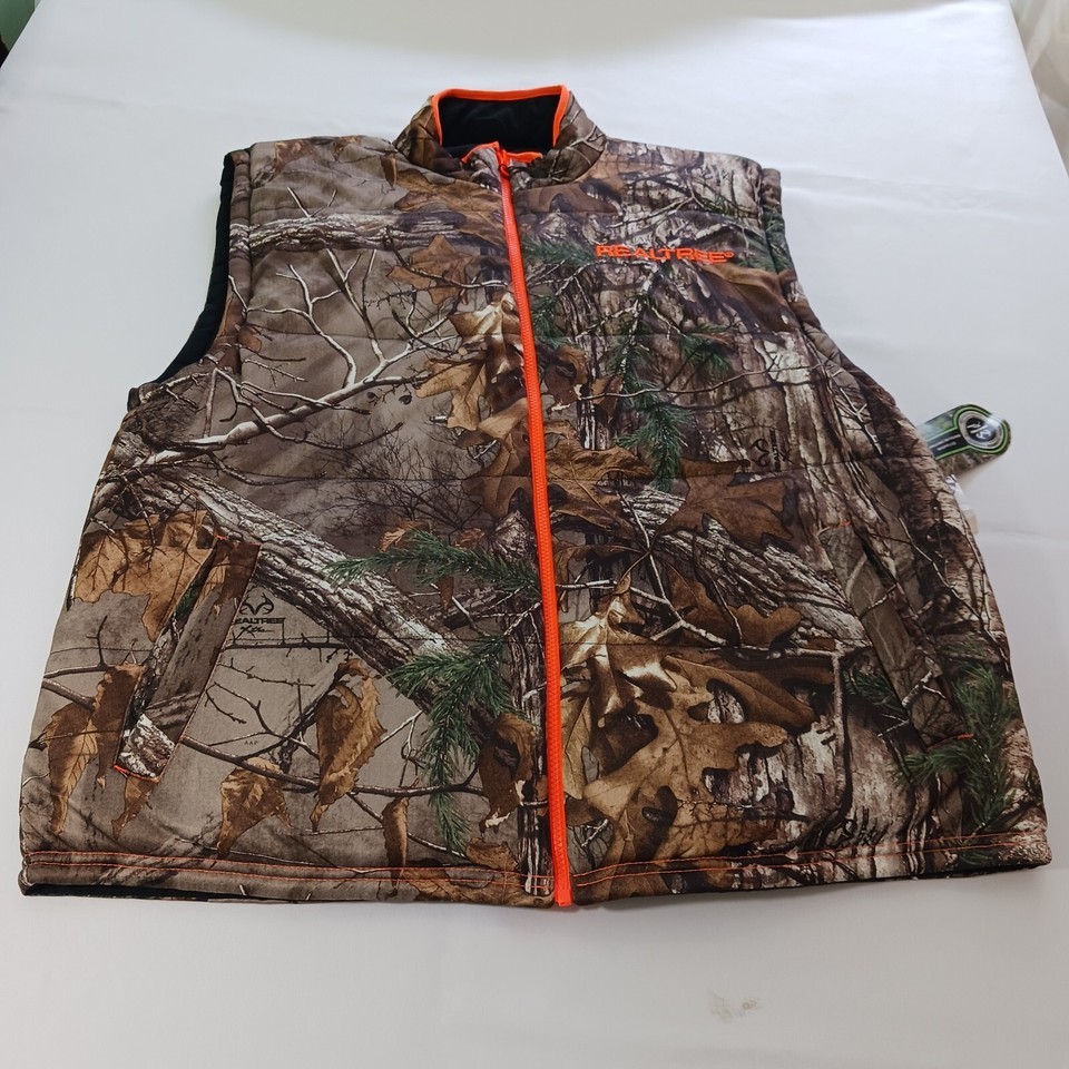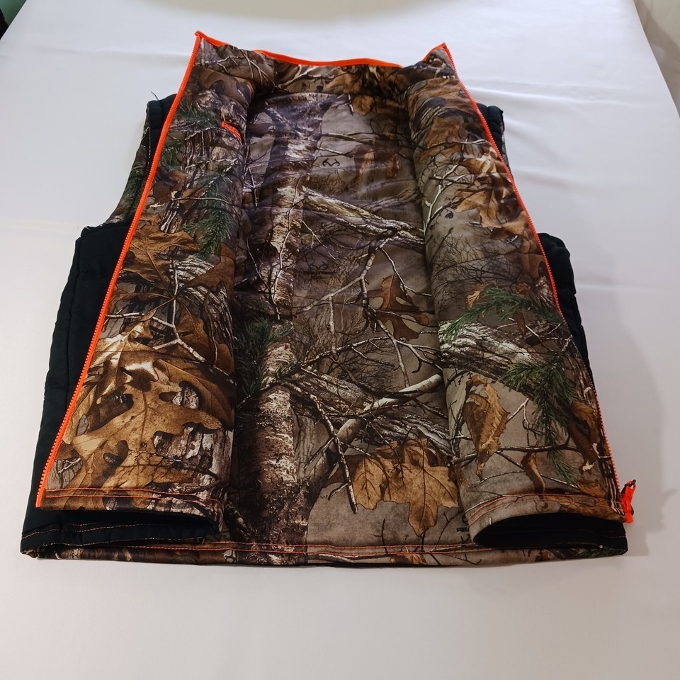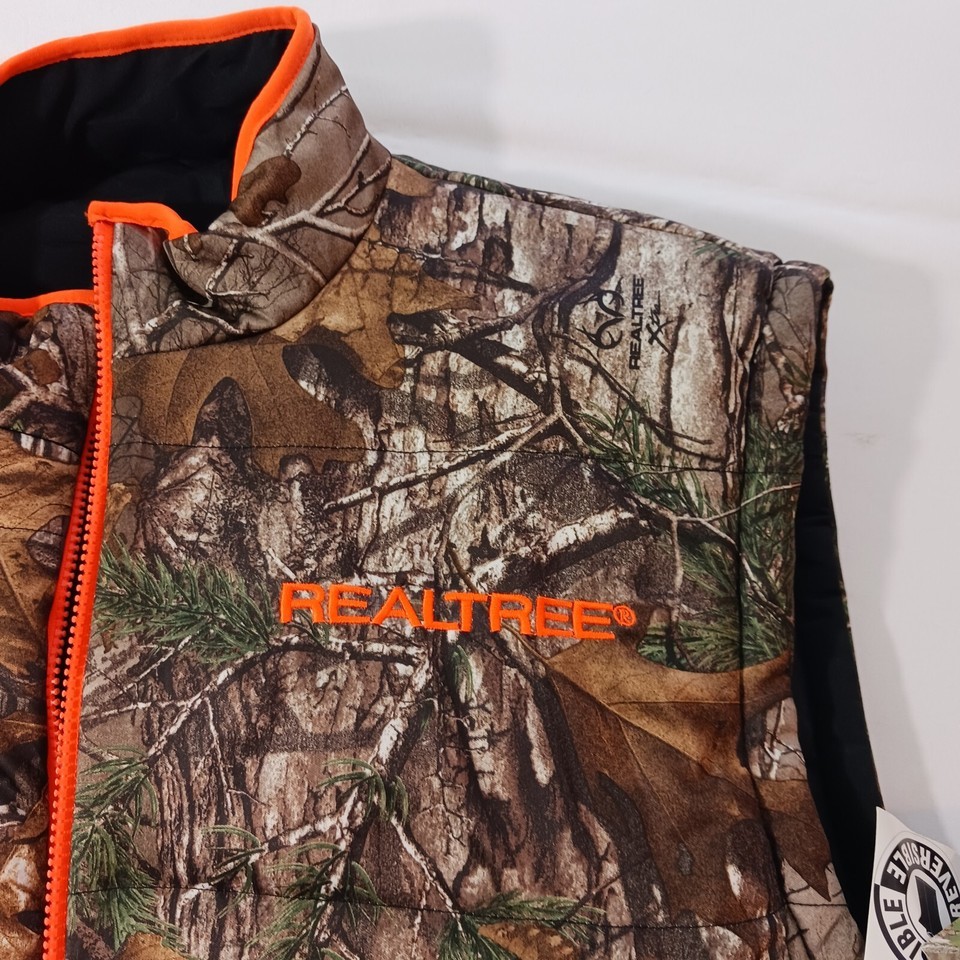 This Earthletics Realtree Men's Brown Camo Reversible Black Sleeveless Jacket Vest in Size XL is the perfect addition to your wardrobe. Made of high-quality Polyester material, this jacket features a unique Camouflage pattern and a Reversible design that allows you to switch up your look. The jacket also comes with a convenient Zip closure and is lined with polyester for added comfort.