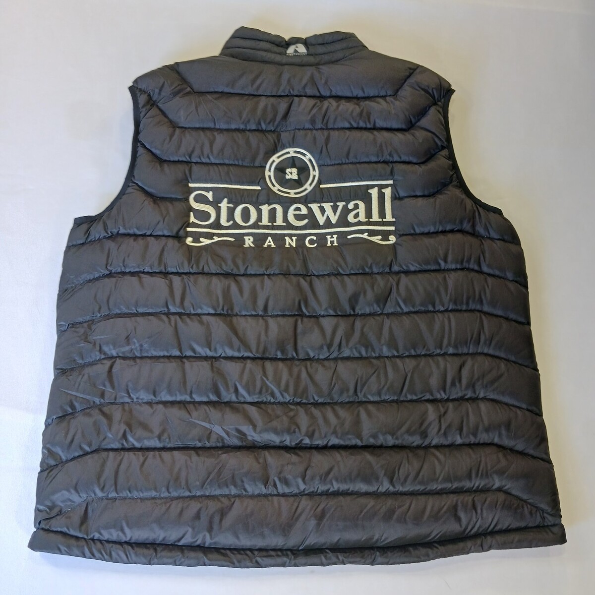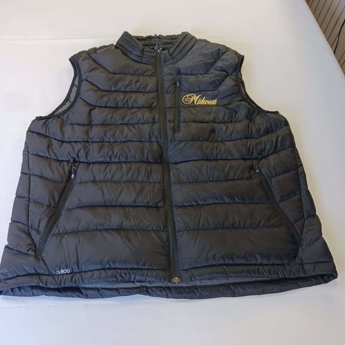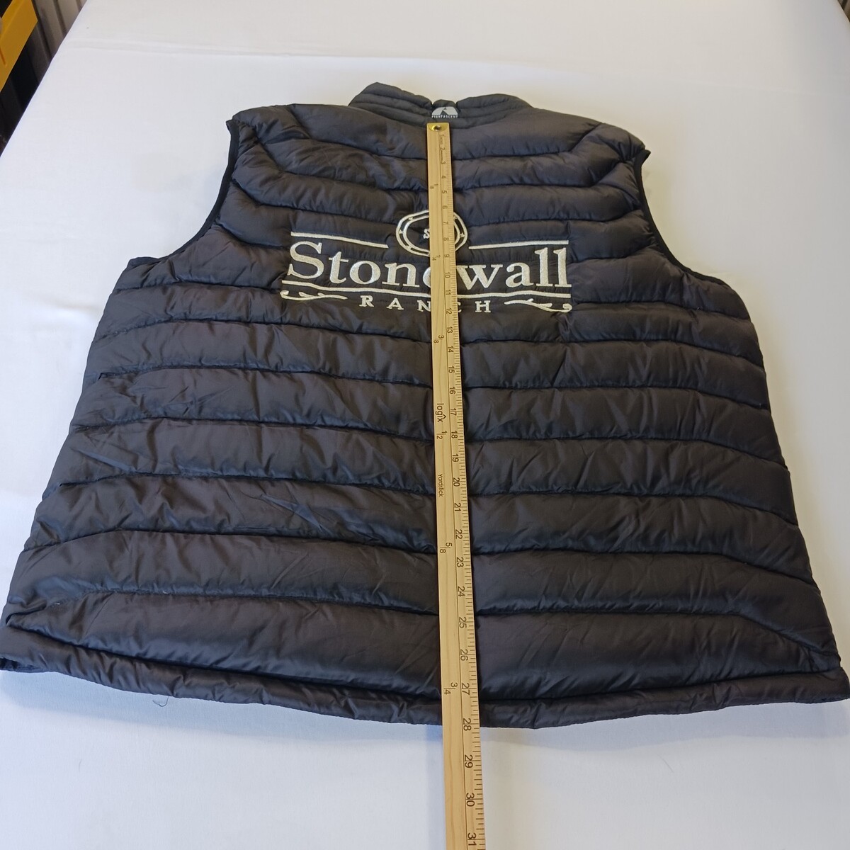 The Eddie Bauer STONEWALL RANCH Men's XL Puffer Vest is a versatile and stylish outerwear option for various occasions such as travel, casual outings, and workwear. Made with a durable nylon outer shell and filled with warm goose down insulation, this vest provides both comfort and warmth. The full zip design, zipped pockets, and lightweight construction make it convenient for outdoor activities like walking and hiking. With a classic black color and quilted design, this Eddie Bauer vest is a timeless piece perfect for the spring, fall, and summer seasons.