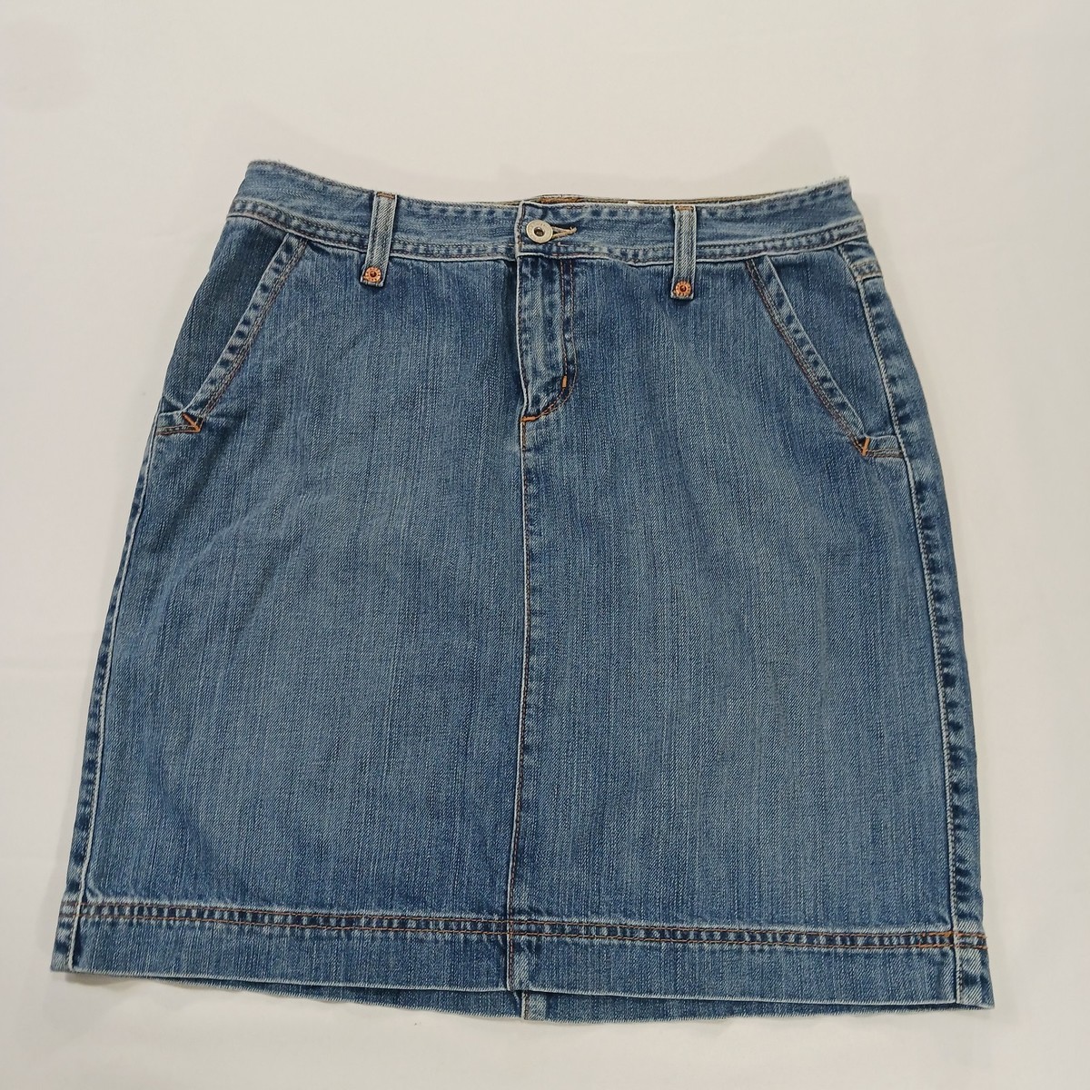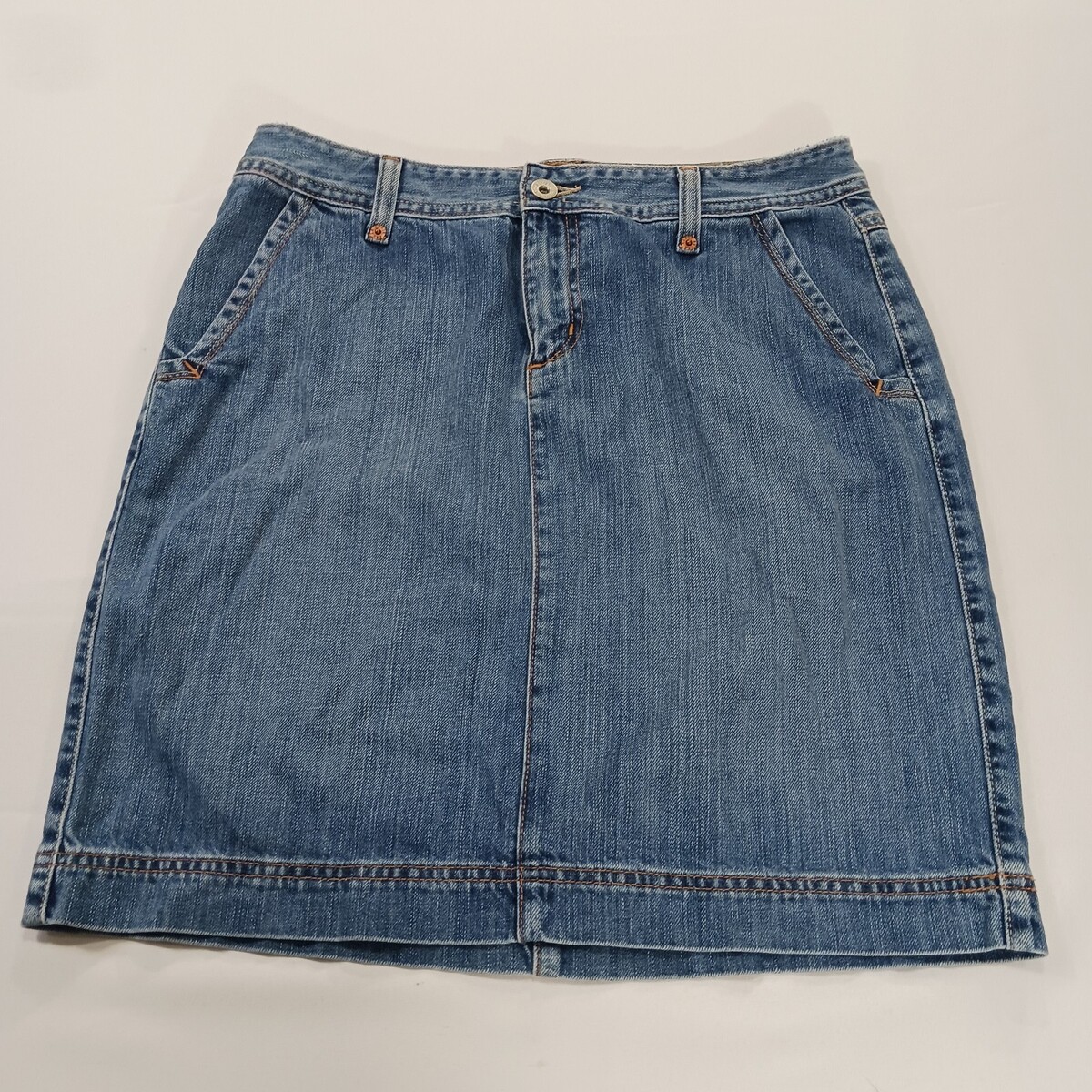 • Eddie Bauer Women's Blue Cotton Denim Skirt Pockets Size 8R Waist 30" image 1