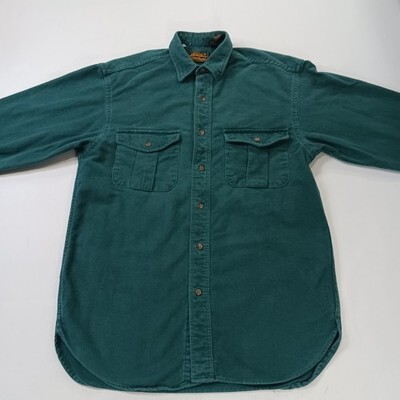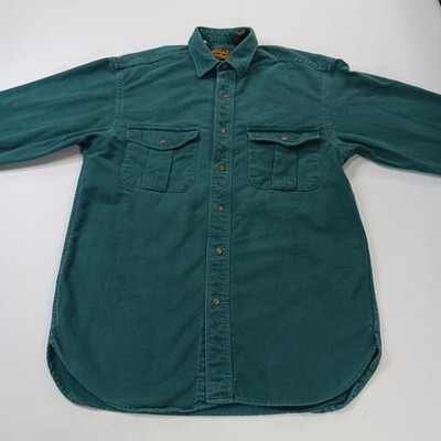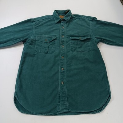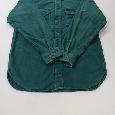 The Eddie Bauer Women's Green Cotton Long Sleeve Heavyweight Shirt in size Small is a classic and versatile top perfect for various occasions, including travel, formal events, workwear, and business meetings. Made from 100% cotton with a heavyweight feel, this shirt features a solid green color, a collared neckline, long sleeves with casual sleeve type, button closure, and a regular fit. With a timeless basic style and no vintage accents, this shirt is machine washable and easy to care for, making it a smart choice for any woman's wardrobe.