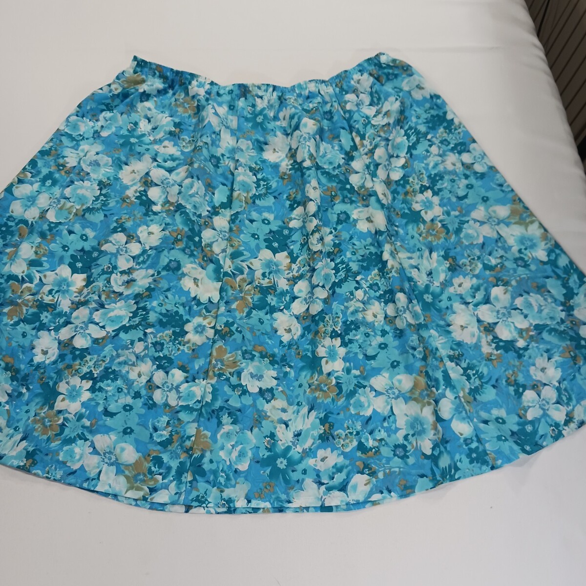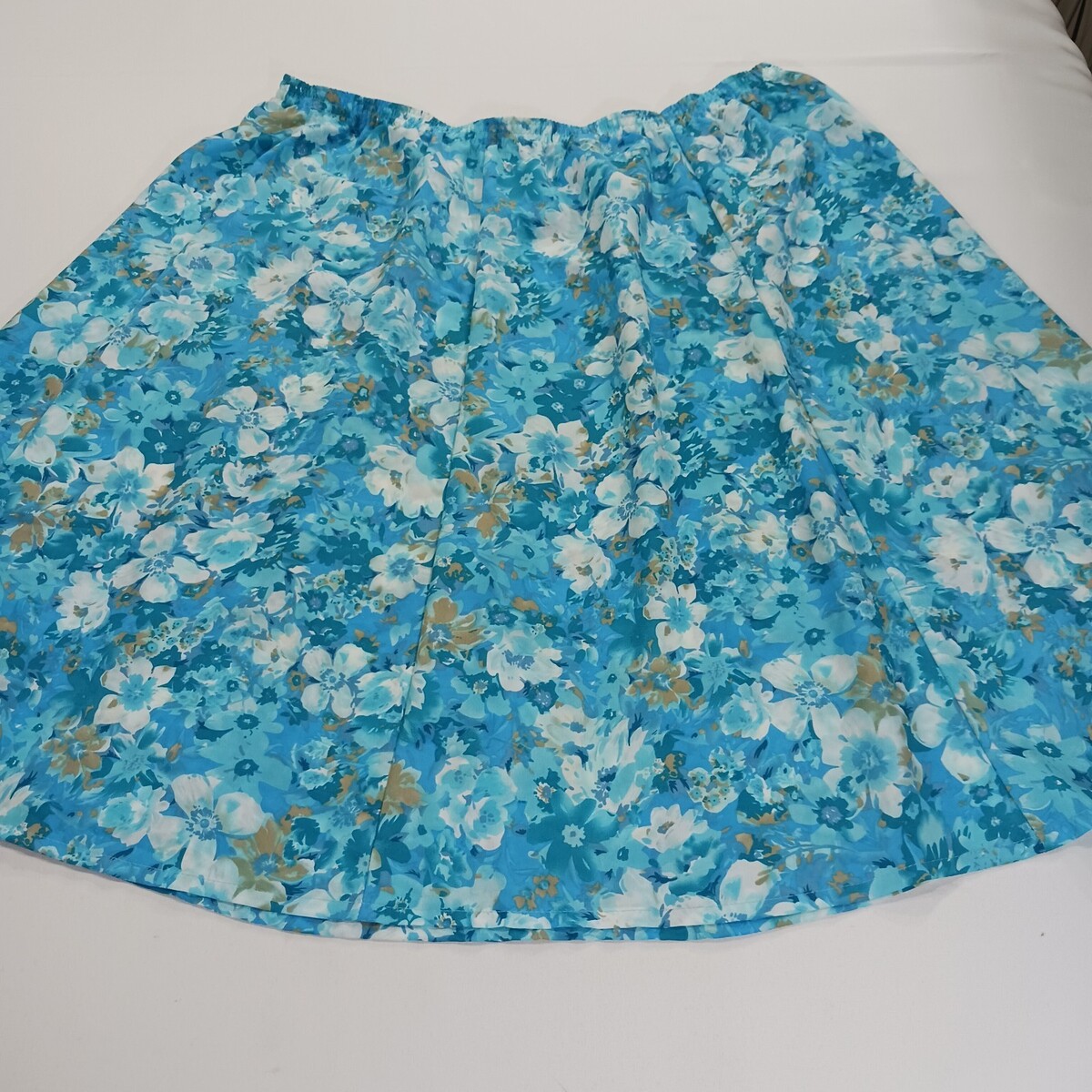 Elastic Waist JSKSS2E Women's Blue Floral Pull-On Skirt Size 2XL Waist 40"