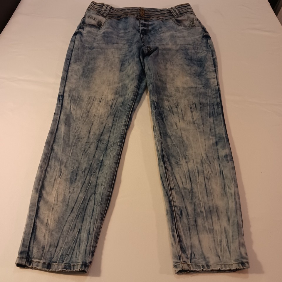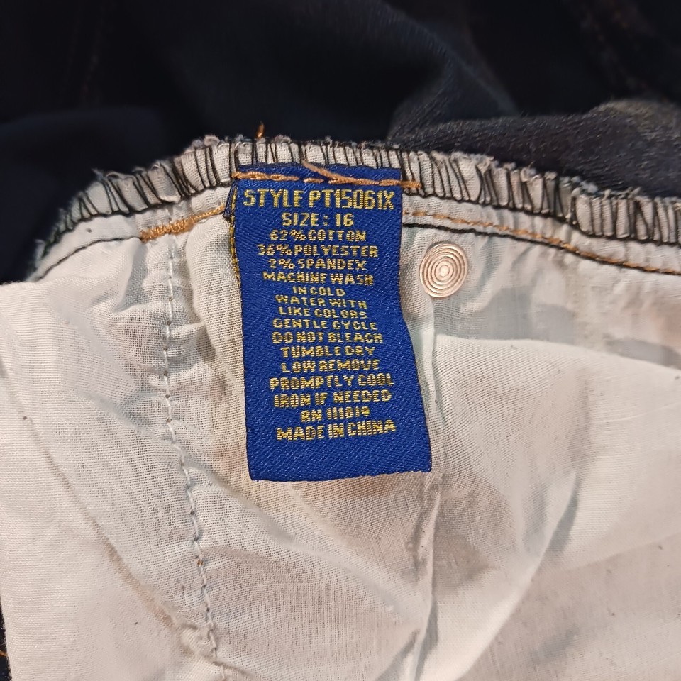 Crafted with stretchy material, these pre-owned jeans offer a comfortable fit for all-day wear. The pockets, button and zipper accents are functional and stylish. Perfect for any woman looking for a versatile pair of jeans in size 16.