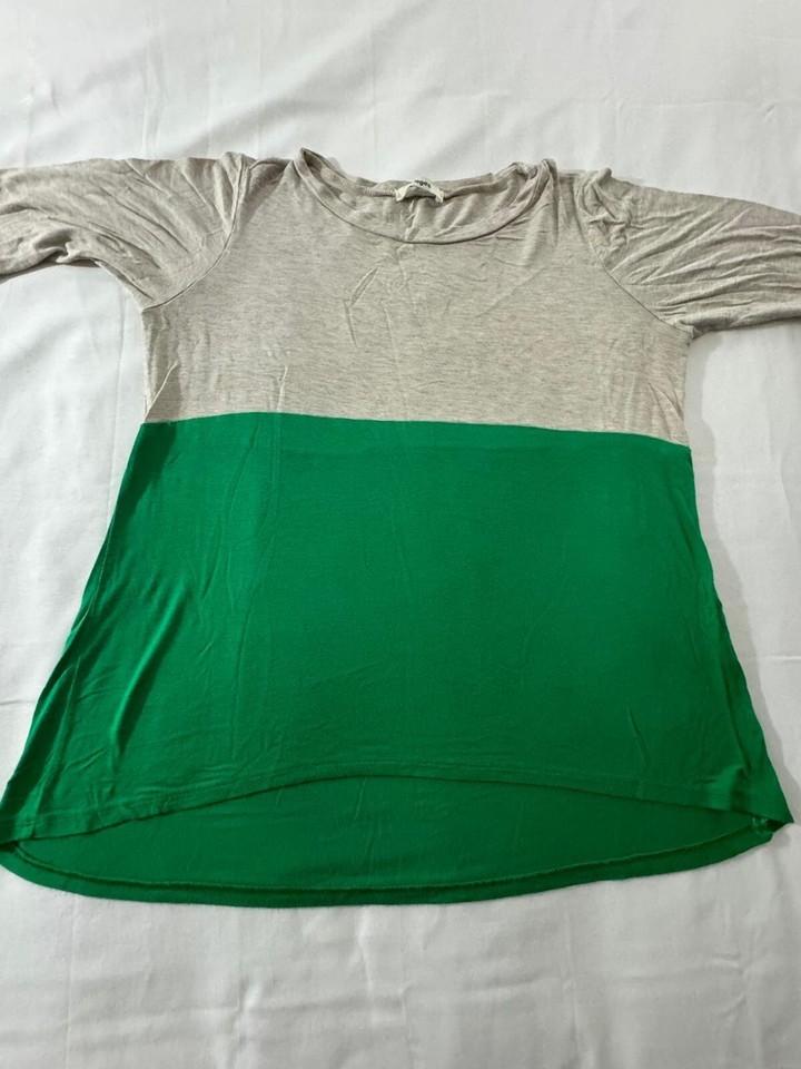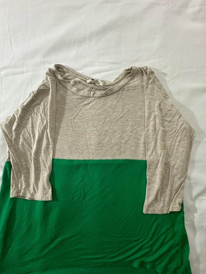 • Eloges Women’s Tan & Green 3/4 Sleeve Blouse Top Size Large Made In USA image 2