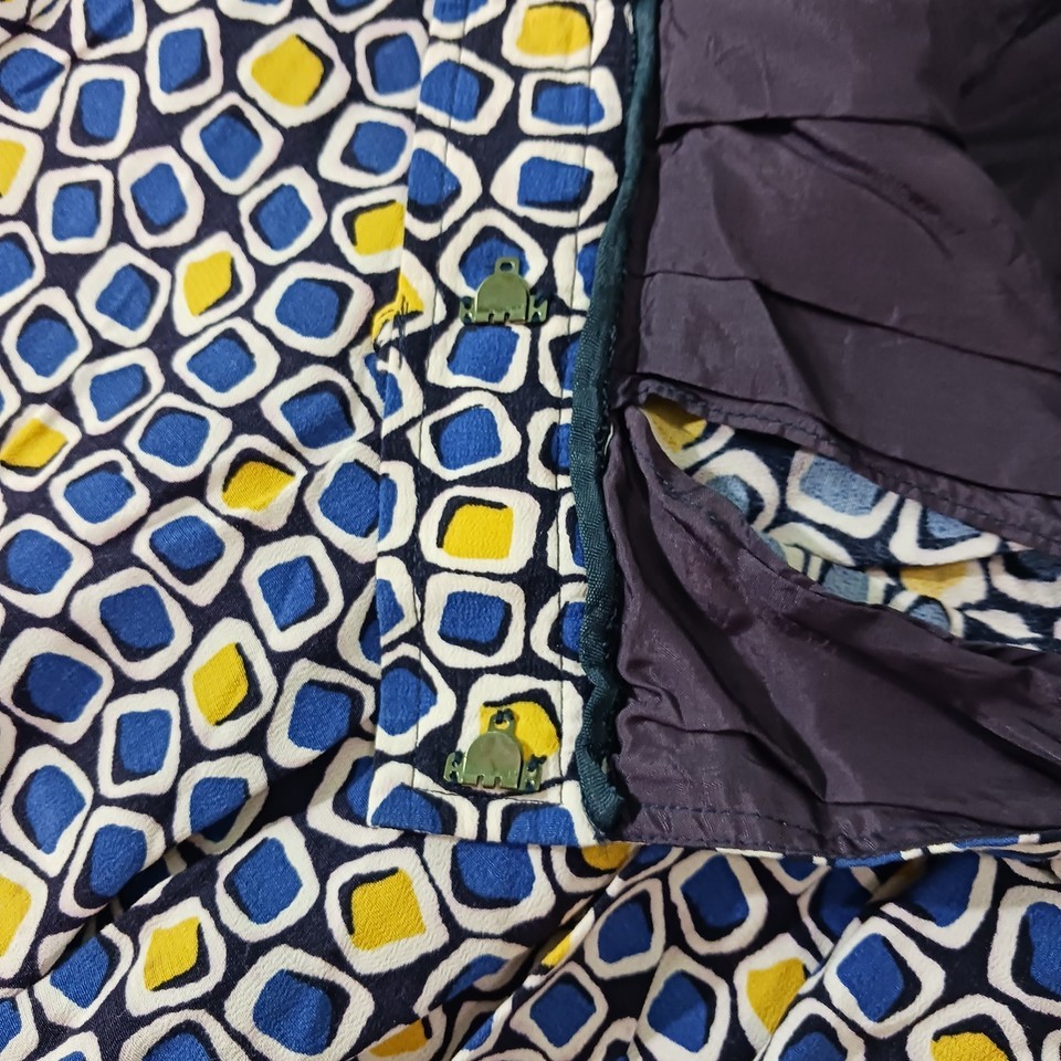 This Evan Picone skirt is a vibrant and stylish piece for women in size 16. The multicolor floral pattern adds a touch of whimsy to the pull-on design, making it easy and comfortable to wear. Made of a combination of rayon and acetate, this 30" skirt features a lined interior for extra quality. With a measured waist of 34", this regular-sized skirt is perfect for adding a pop of color and pattern to any outfit.