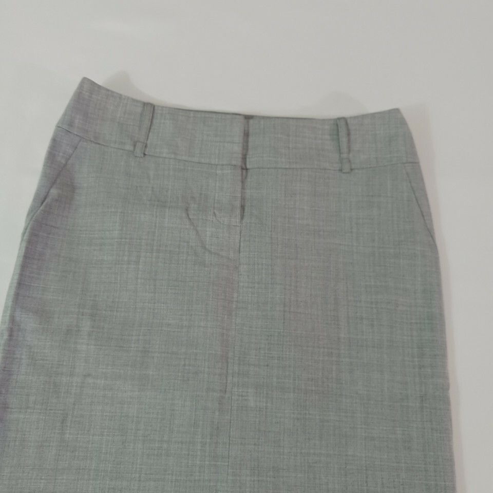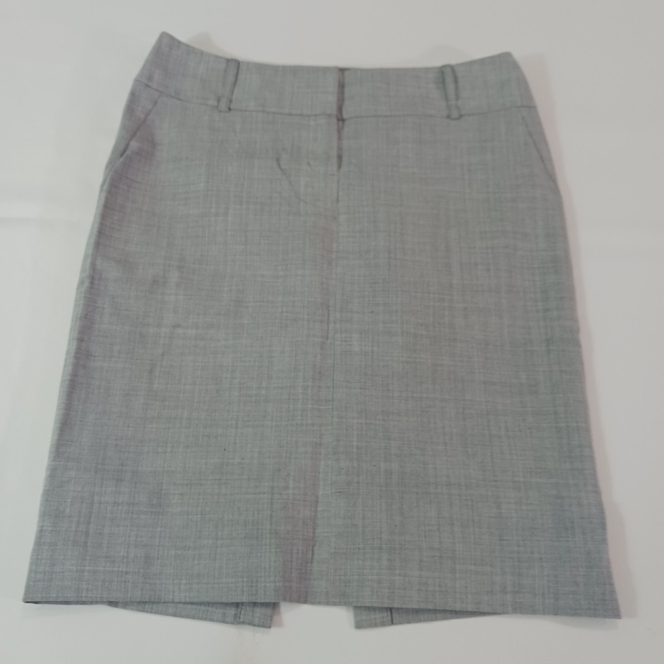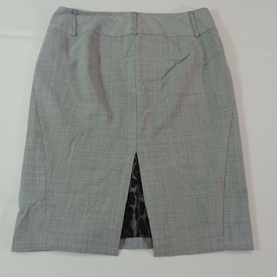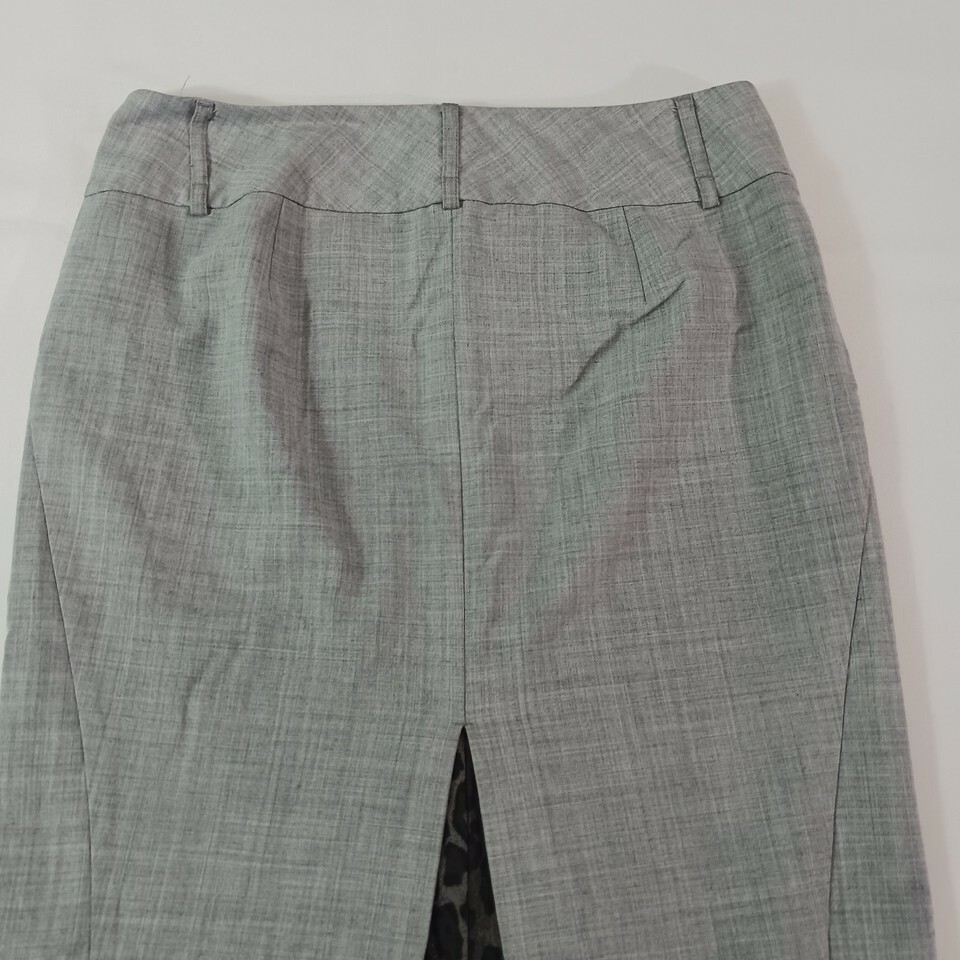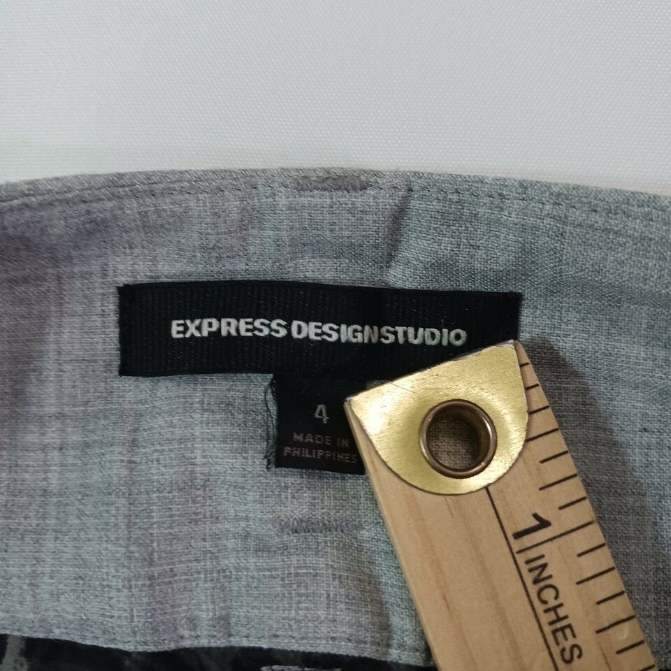 Elevate your wardrobe with the Express Design Studio Women's Gray A-Line Pencil Skirt. This versatile piece, size 4, is crafted from a blend of rayon and spandex, ensuring both comfort and a flattering fit. The skirt's front zipper and rear slit add a modern edge to its classic silhouette, while the pleated details offer a touch of sophistication.