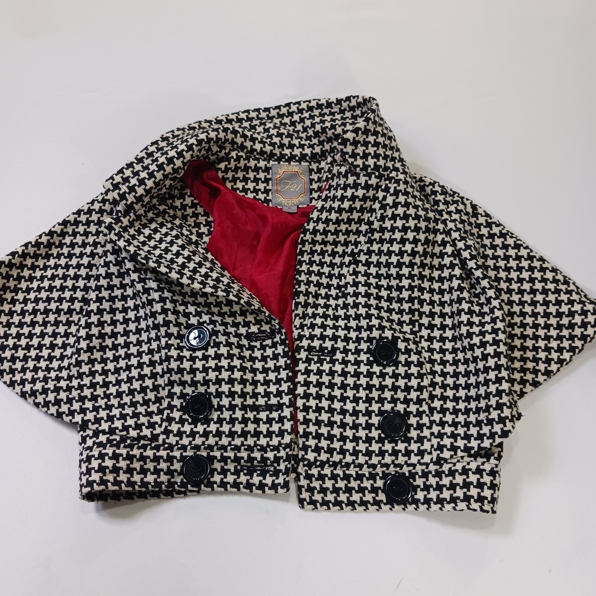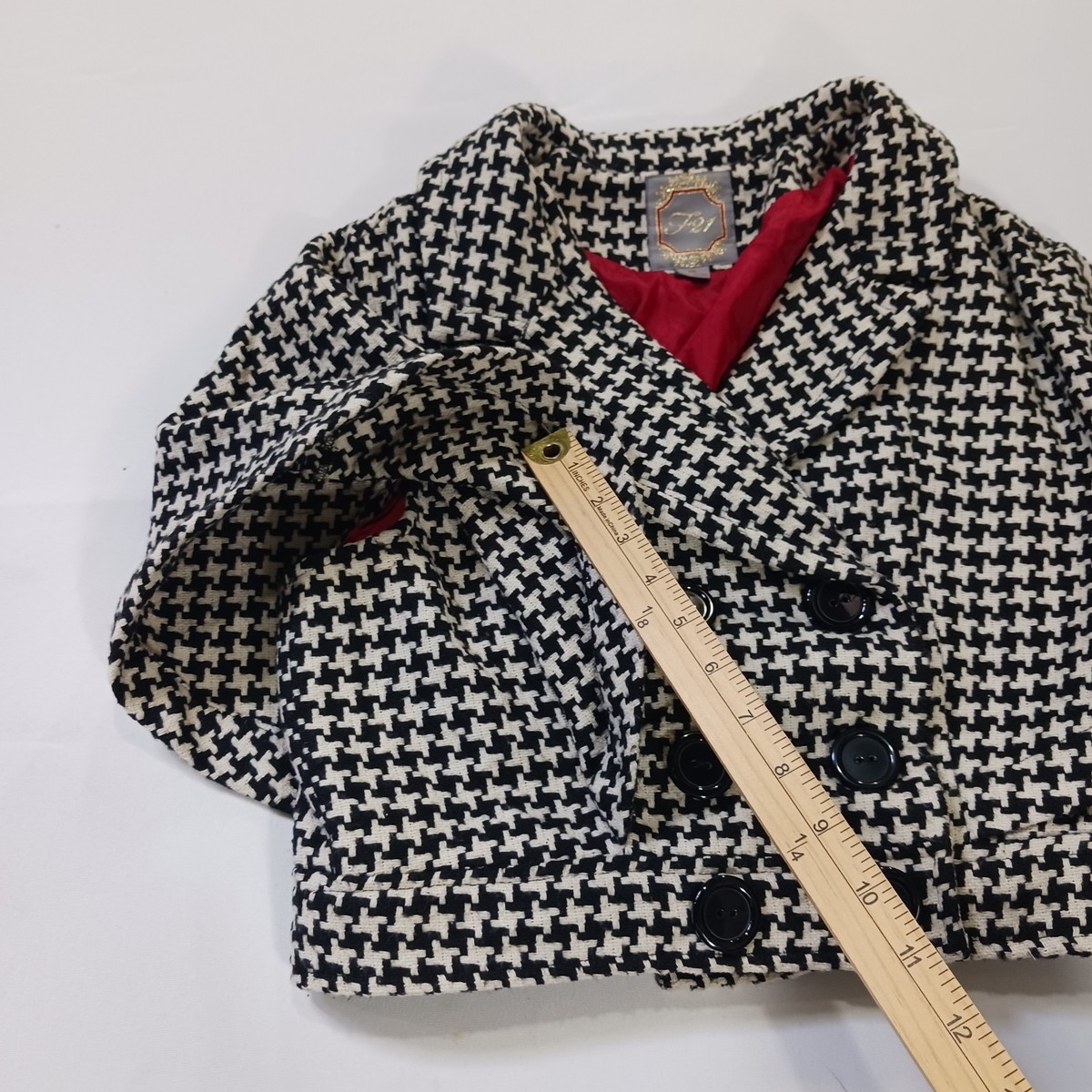 The F21 Youth Girls Black & White Wool Blend Buttons Crop Blazer Jacket in size Medium is a stylish and versatile piece perfect for a variety of occasions. Made from a durable polyester outer shell and lined with polyester, this blazer features long sleeves and a button closure for a classic look. The cropped length adds a modern touch, while the black color and button accents add a touch of sophistication. Whether worn for a party, casual outing, or business event, this blazer is sure to elevate any outfit with its trendy design and quality craftsmanship.