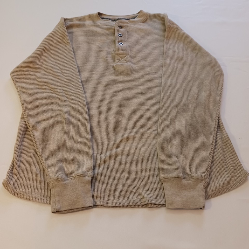 Faded Glory 3- Button Men's Tan Sweatshirt Medium 38-40 Long Sleeve Thermal