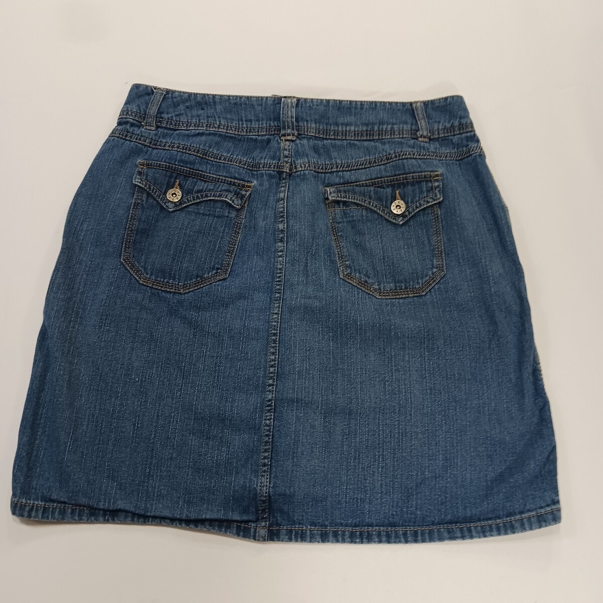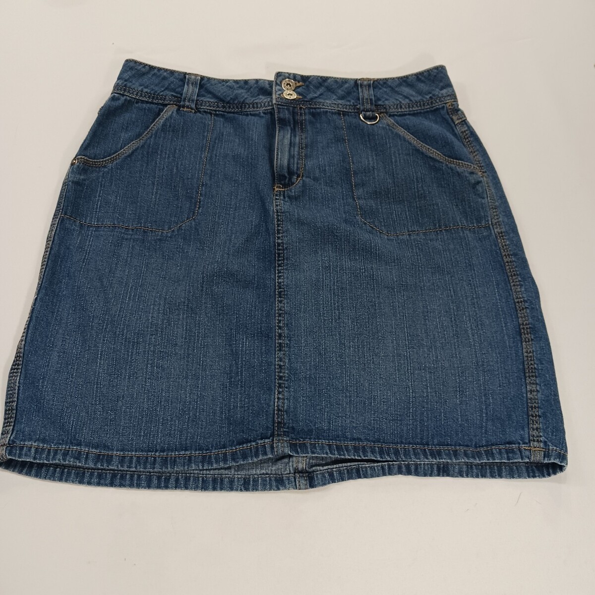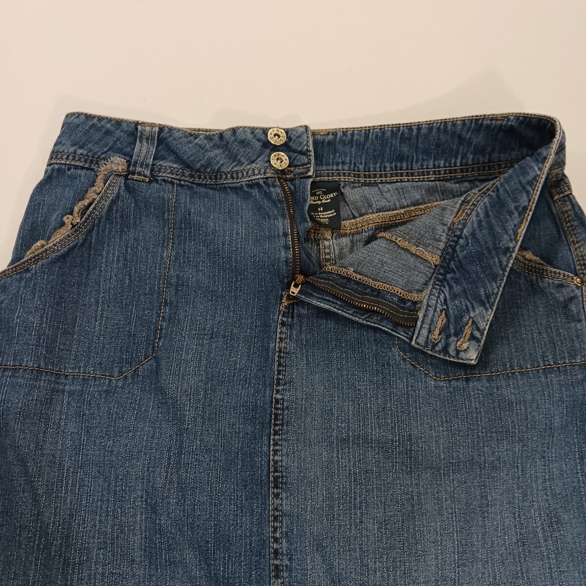 The Faded Glory FL39101BD Women's Blue Cotton Denim Skirt in size 12 with a 32" waist is a stylish and versatile addition to any woman's wardrobe. This denim skirt features a button closure, making it perfect for both casual and party occasions. Made from comfortable cotton denim fabric, this skirt is durable and easy to care for. The classic blue color and denim style add a timeless touch to any outfit, making it a must-have piece for any fashion-forward woman.