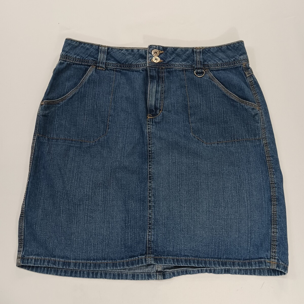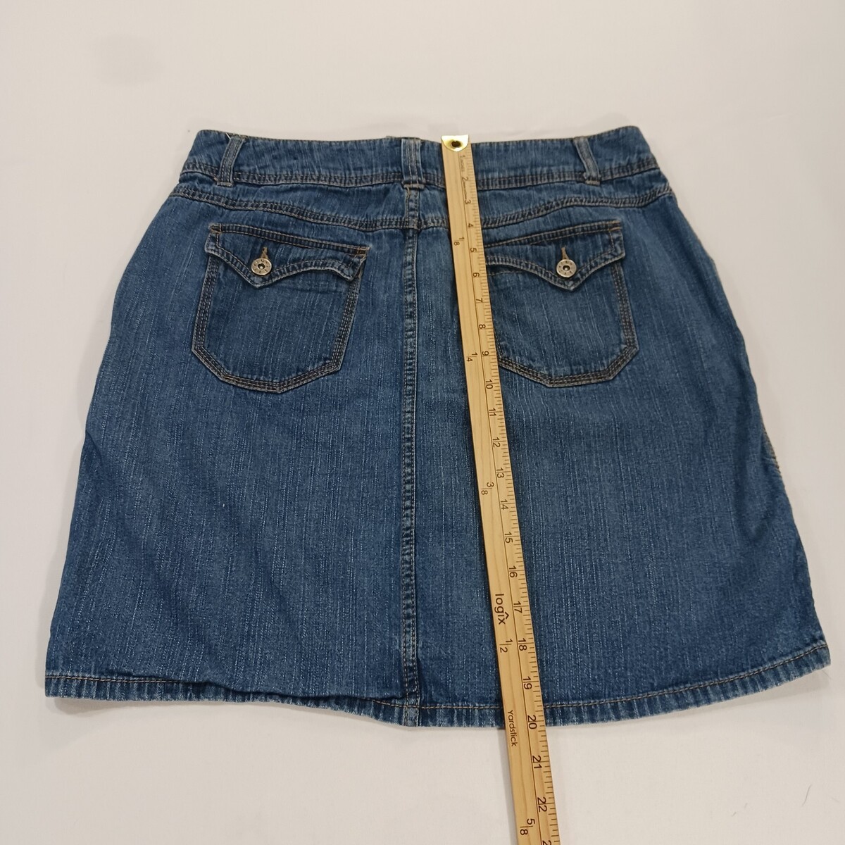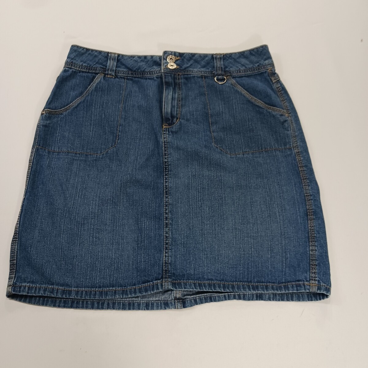 The Faded Glory FL39101BD Women's Blue Cotton Denim Skirt in size 12 with a 32" waist is a stylish and versatile addition to any woman's wardrobe. This denim skirt features a button closure, making it perfect for both casual and party occasions. Made from comfortable cotton denim fabric, this skirt is durable and easy to care for. The classic blue color and denim style add a timeless touch to any outfit, making it a must-have piece for any fashion-forward woman.