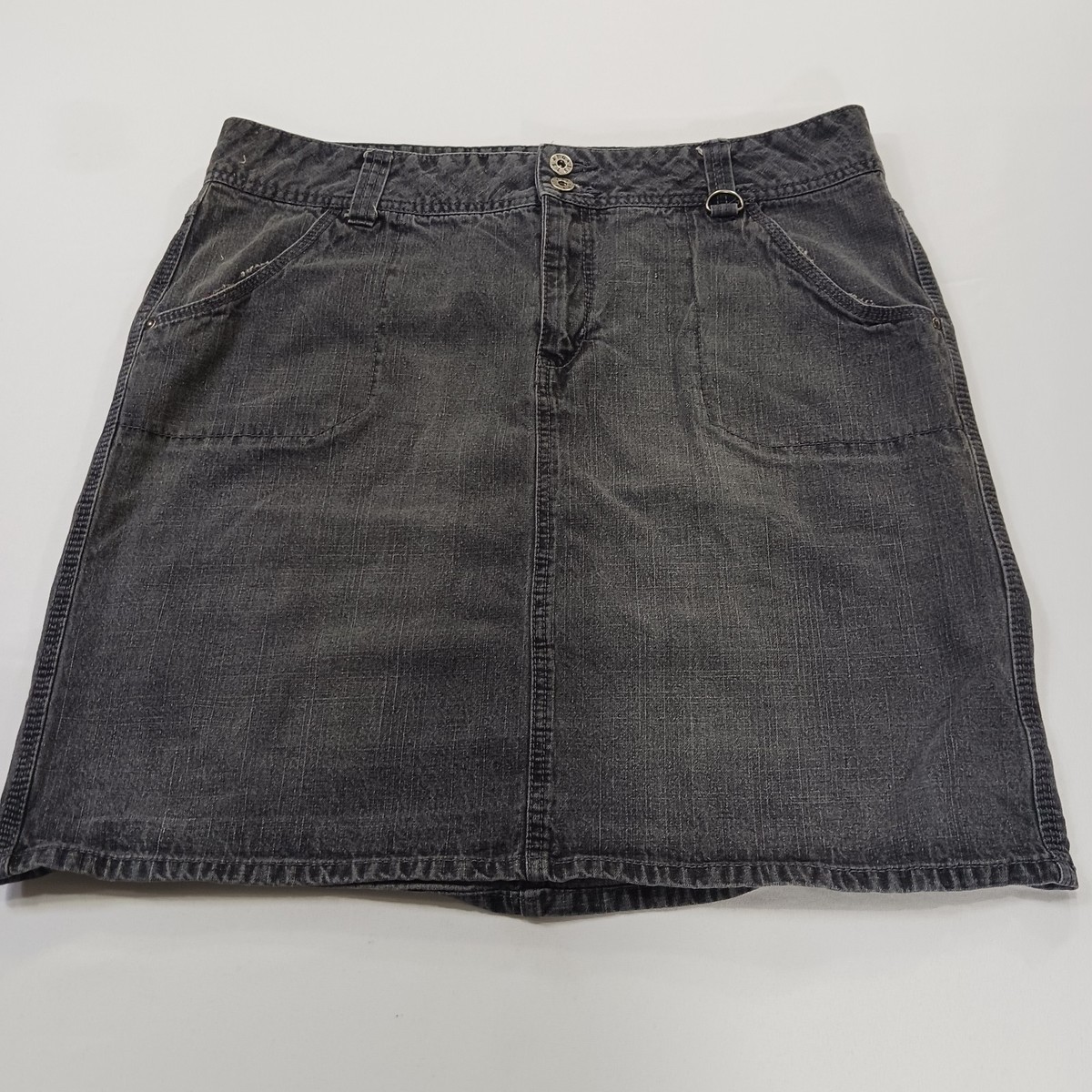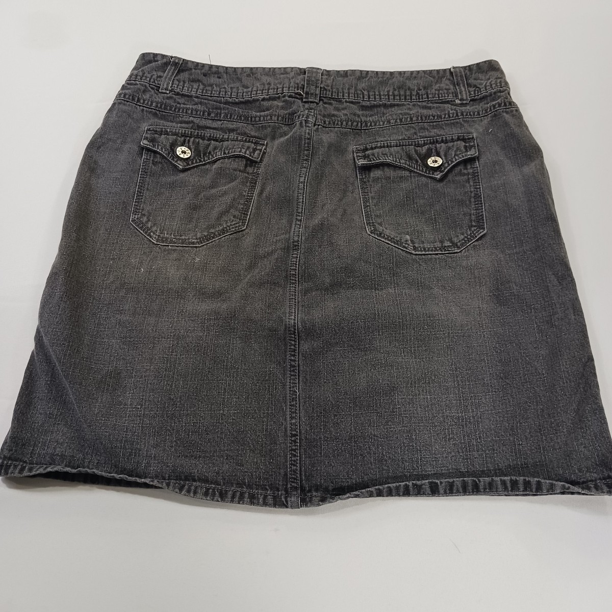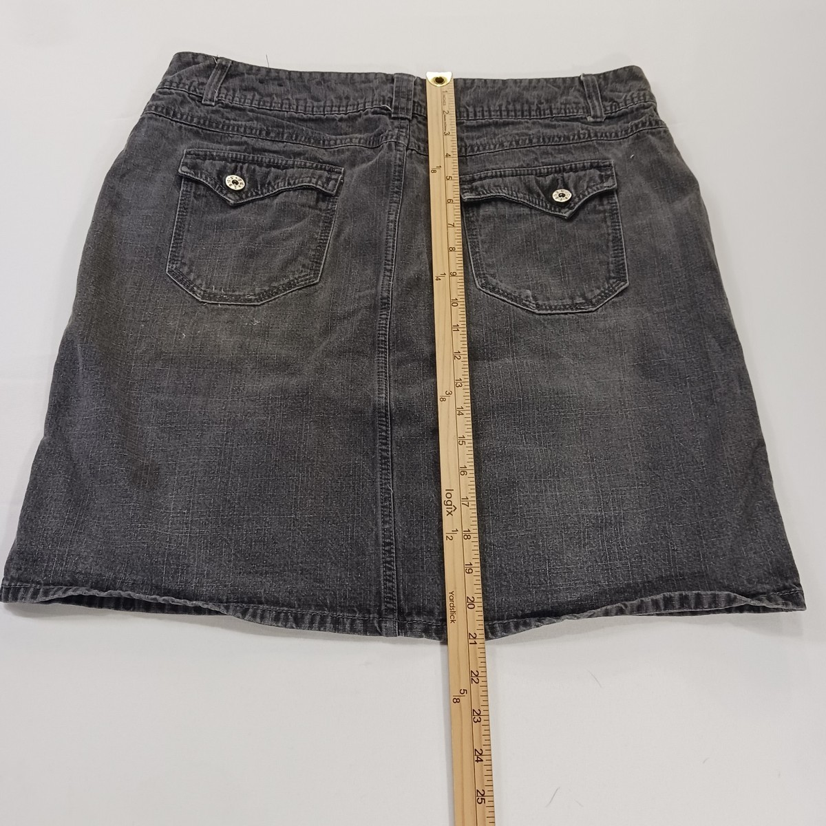 The Faded Glory RN#89169 Women's Black Cotton Blend Denim Skirt in size 16 is a stylish and versatile piece for any woman's wardrobe. Made with a comfortable blend of polyester and cotton, this skirt features a classic zip closure and convenient pockets for added functionality. The mini length and solid black color make it easy to pair with a variety of tops and shoes, while the regular fit ensures a flattering silhouette. Perfect for casual or dressier occasions, this skirt is a must-have for any fashion-forward woman.