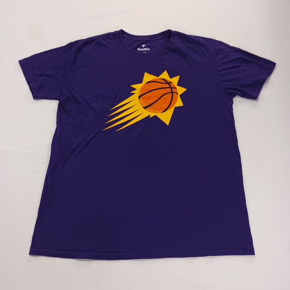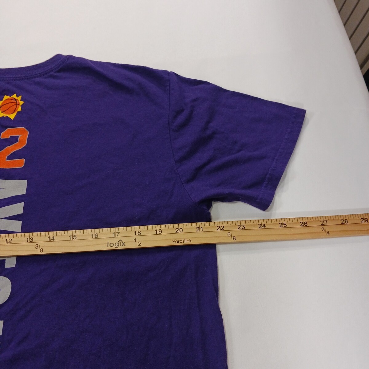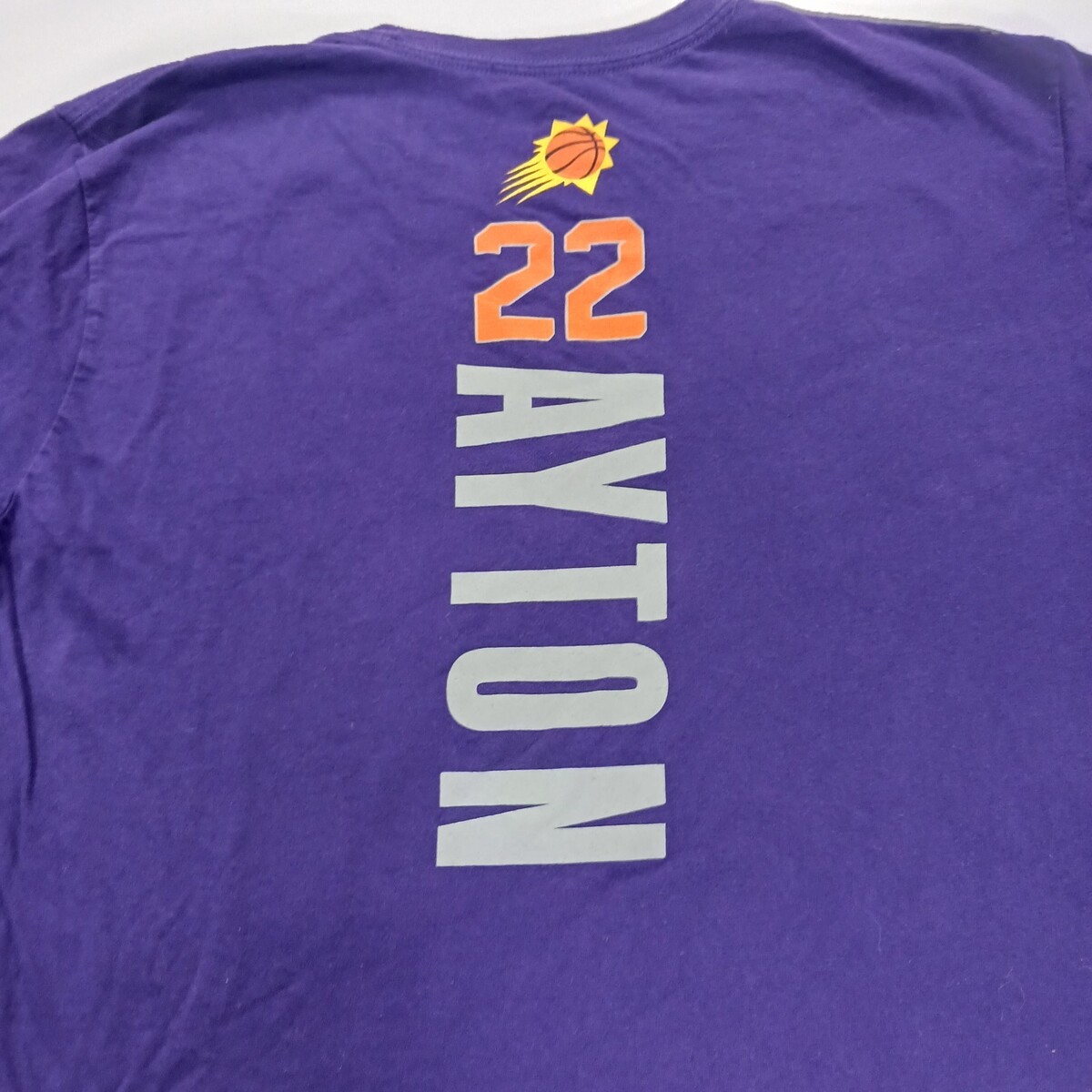 This product is an officially licensed NBA Deandre Ayton #22 Phoenix Suns men's purple graphic T-shirt by Fanatics. The shirt is made in Nicaragua and features the player's name and team logo, perfect for any basketball fan looking to show their support. With a size L and a focus on the National Basketball Association, this shirt is a must-have for fans of both Ayton and the Phoenix Suns.
