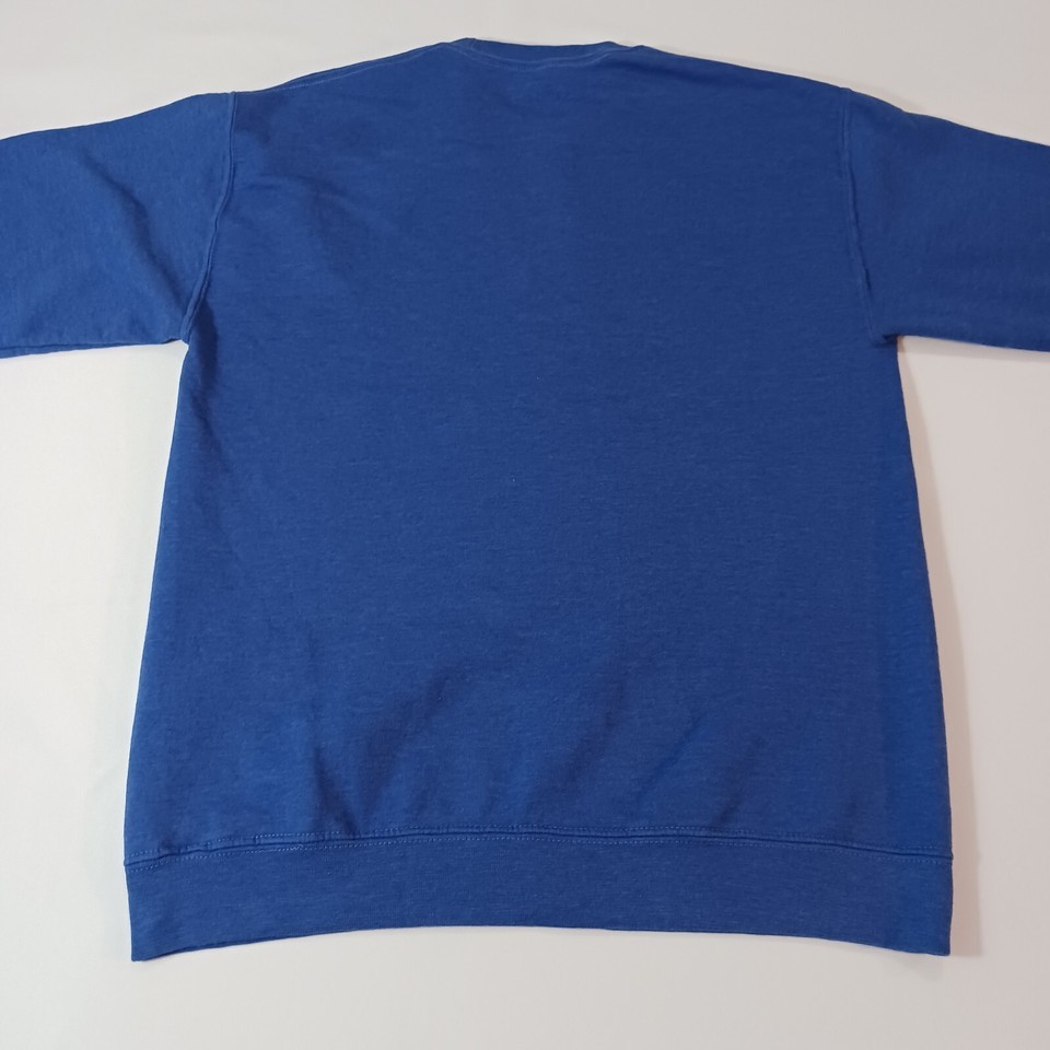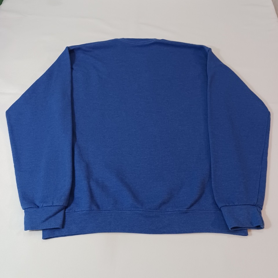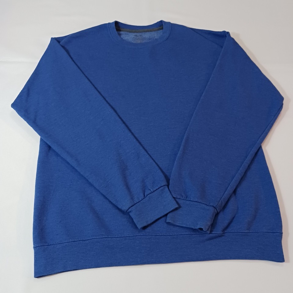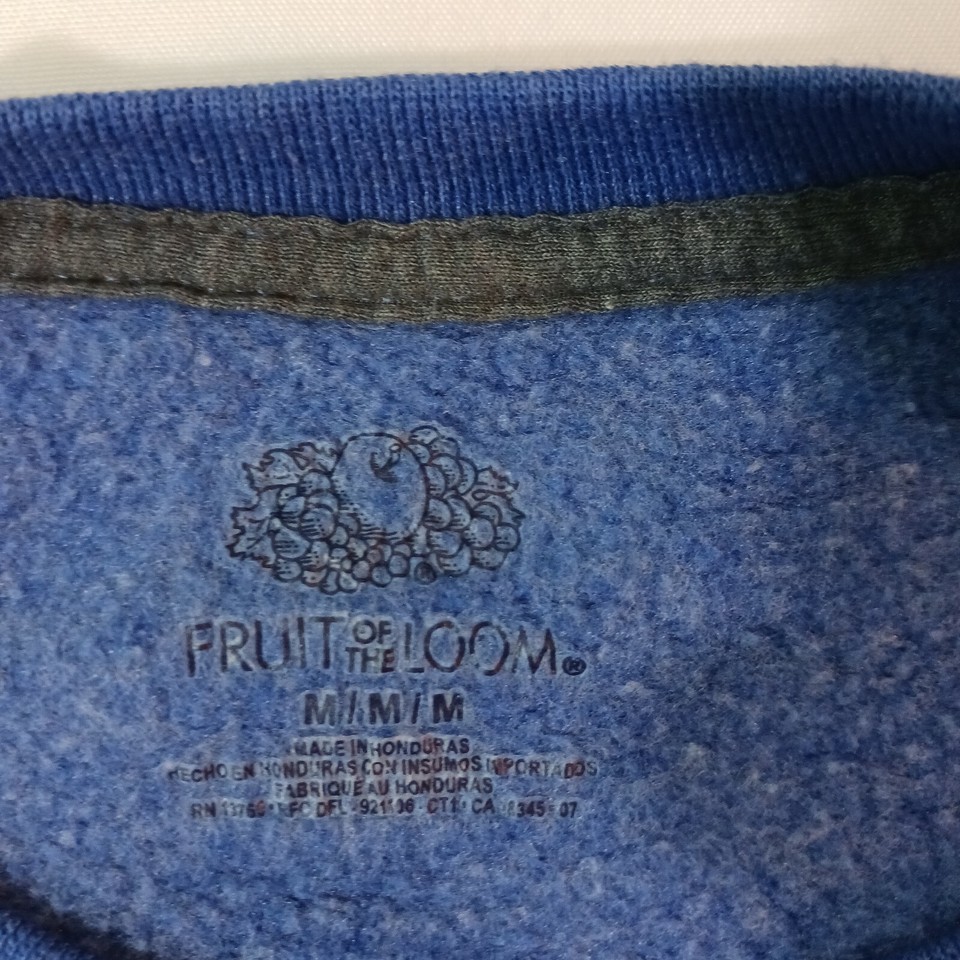 The Fruit of the Loom Men's Blue Cotton Blend Pullover is a comfortable sweatshirt in size M. It features a regular fit with long sleeves and a round neckline, ideal for casual wear. Made from a cotton blend fabric, this gray sweatshirt is designed as a pullover style with a fleece interior, providing warmth and versatility for everyday use.