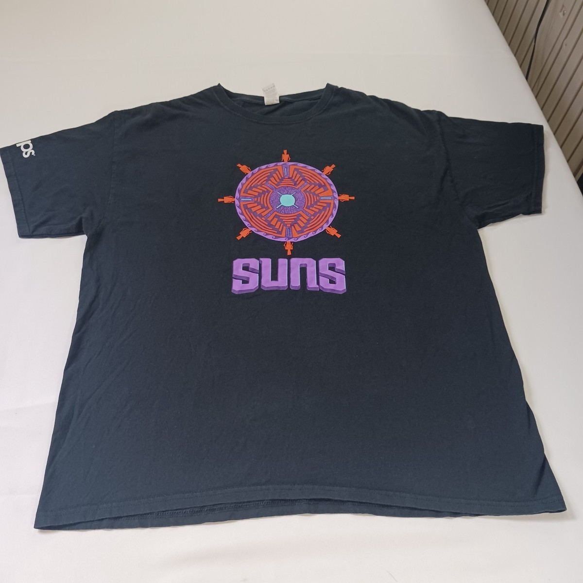 The Fruit of the Loom SUNS Men's Black Cotton Short Sleeve Graphic T-Shirt in size XL is a versatile and stylish addition to any man's wardrobe. Made from soft and comfortable cotton material, this T-shirt features a classic crew neck and regular fit. The graphic print adds a touch of personality to the wardrobe staple, making it suitable for all seasons. With its machine washable care instructions, this T-shirt offers both practicality and style for everyday wear. Ideal for casual occasions, this T-shirt is a timeless choice for men looking for a reliable and fashionable basic.