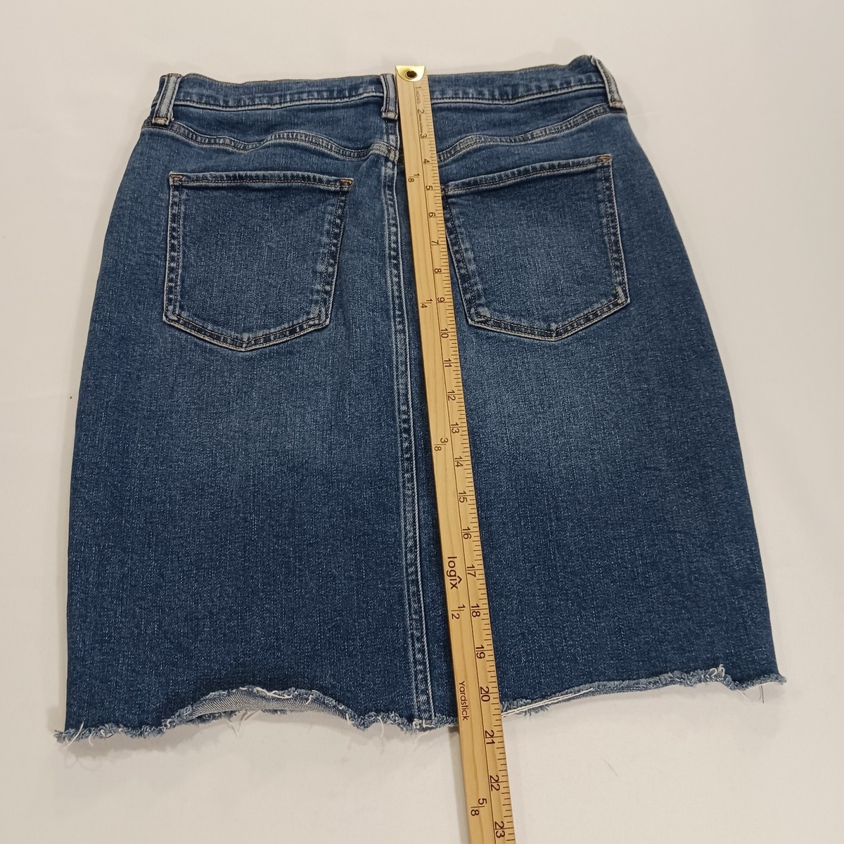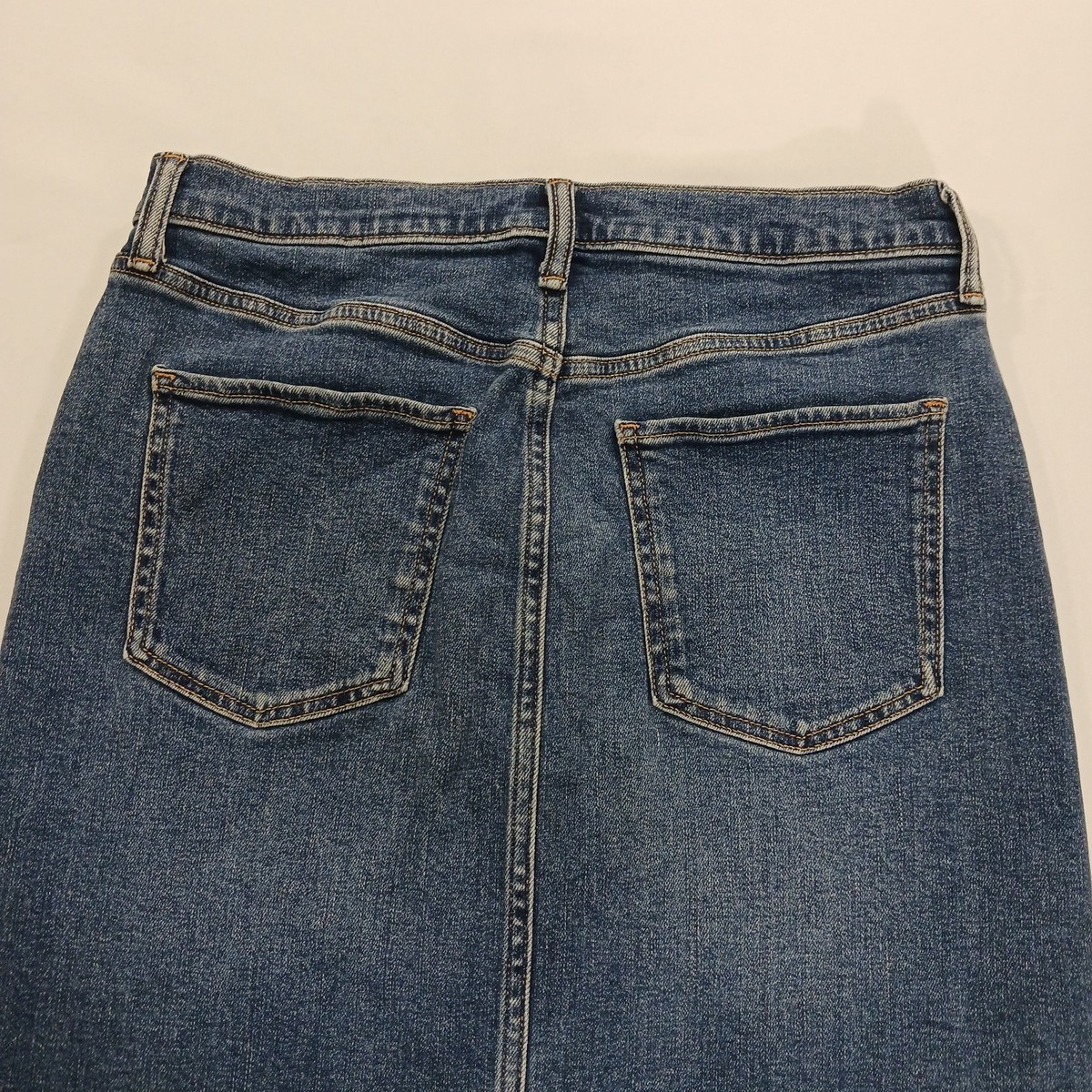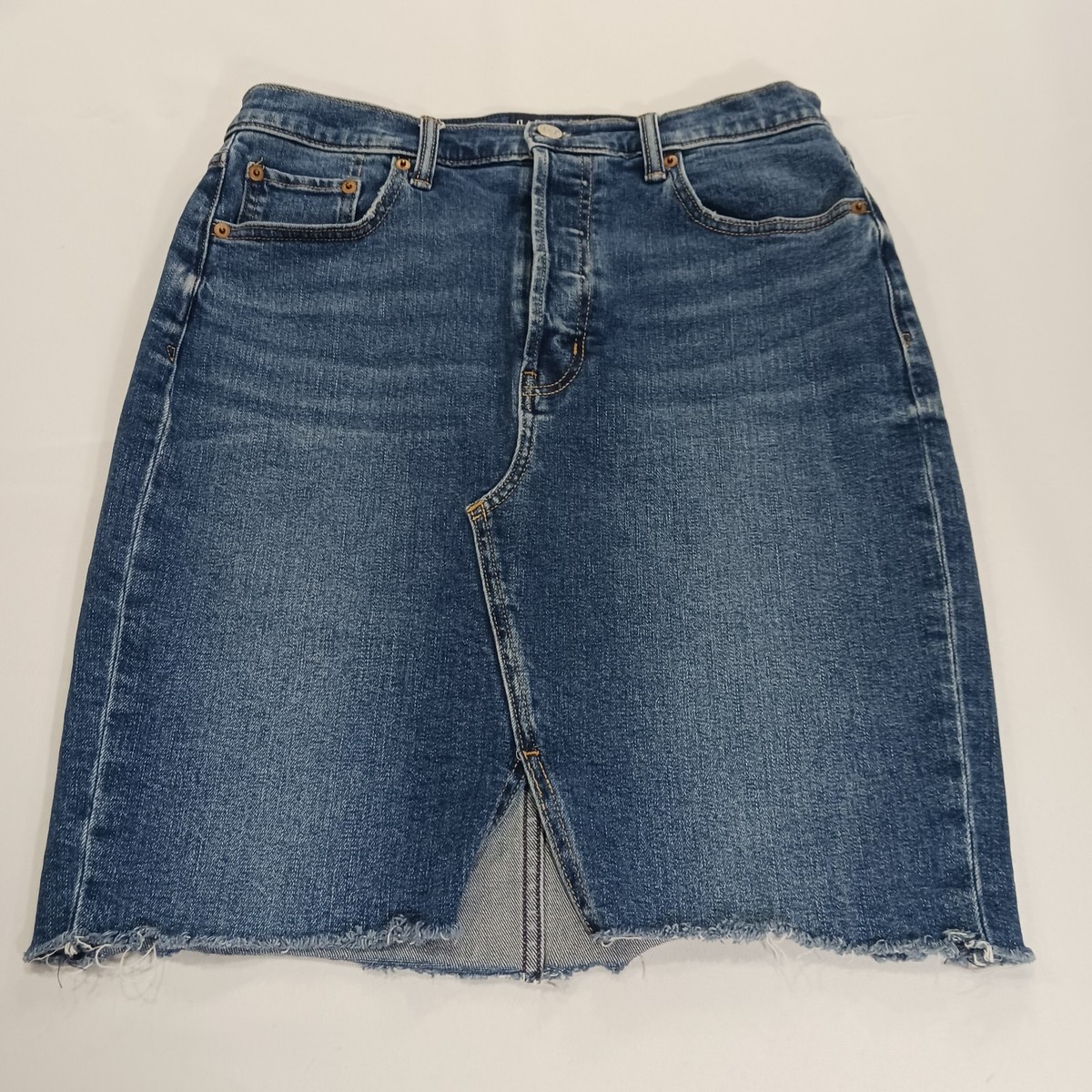 The product is a women's blue cotton blend denim pencil skirt by Gap. It features a button-fly closure, solid pattern, and a straight and pencil style. The skirt is in size 8 and made of a cotton blend material with a skirt length of 20.5 inches. It is designed for regular size and has a country of origin from Vietnam. Perfect for a stylish and versatile addition to any woman's wardrobe.