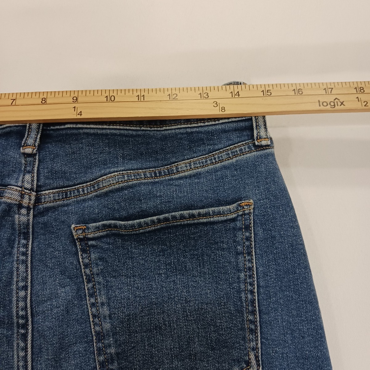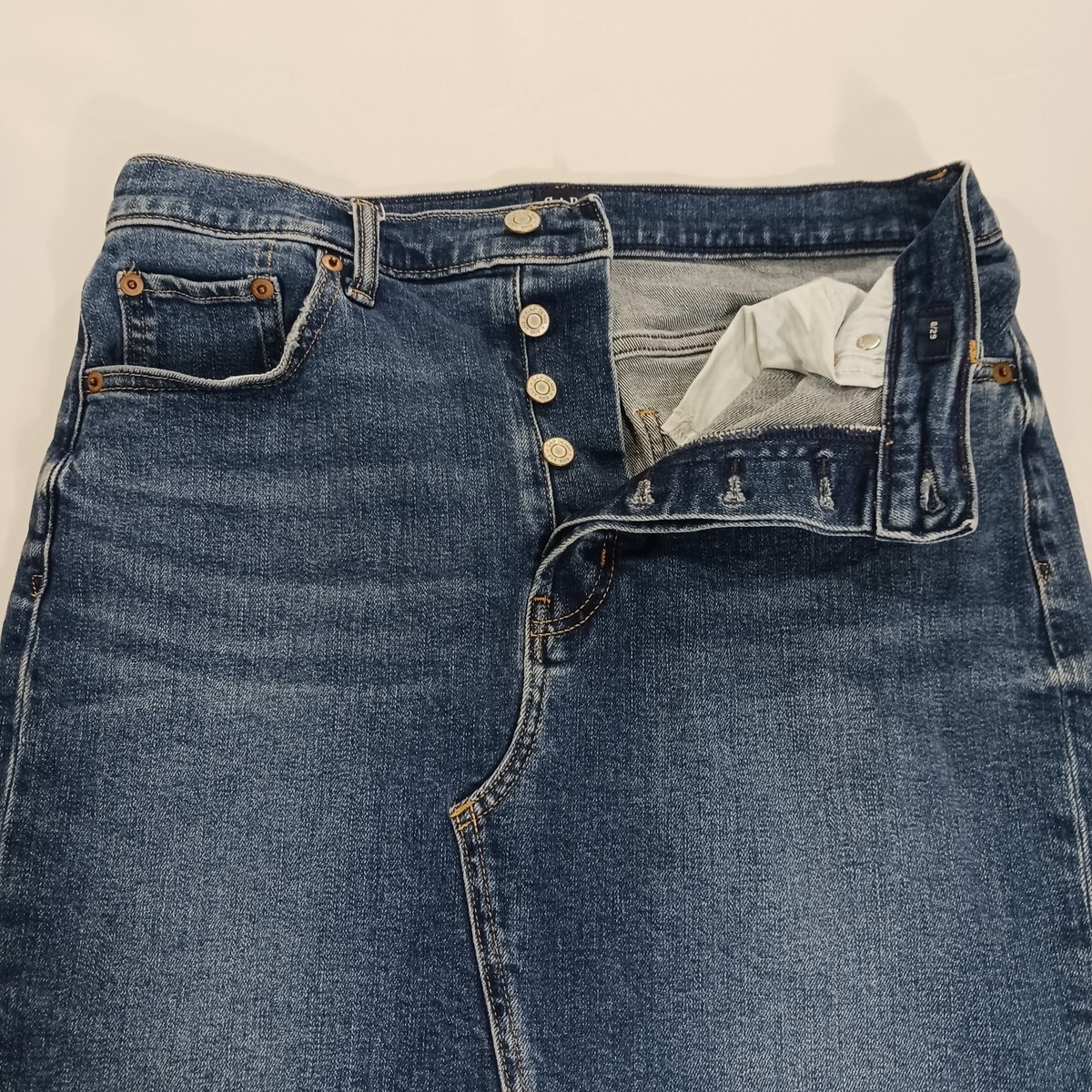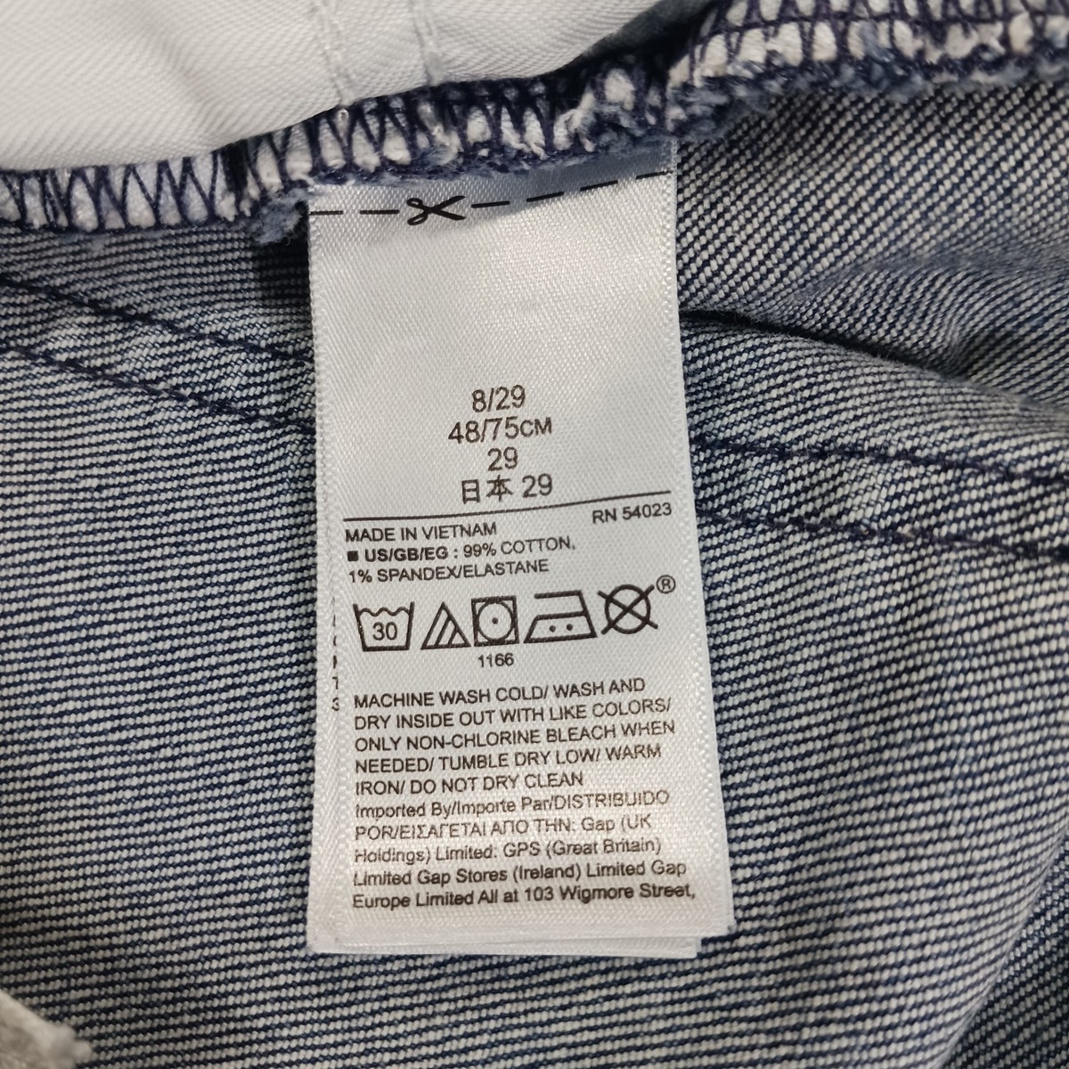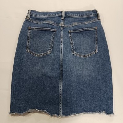 The product is a women's blue cotton blend denim pencil skirt by Gap. It features a button-fly closure, solid pattern, and a straight and pencil style. The skirt is in size 8 and made of a cotton blend material with a skirt length of 20.5 inches. It is designed for regular size and has a country of origin from Vietnam. Perfect for a stylish and versatile addition to any woman's wardrobe.