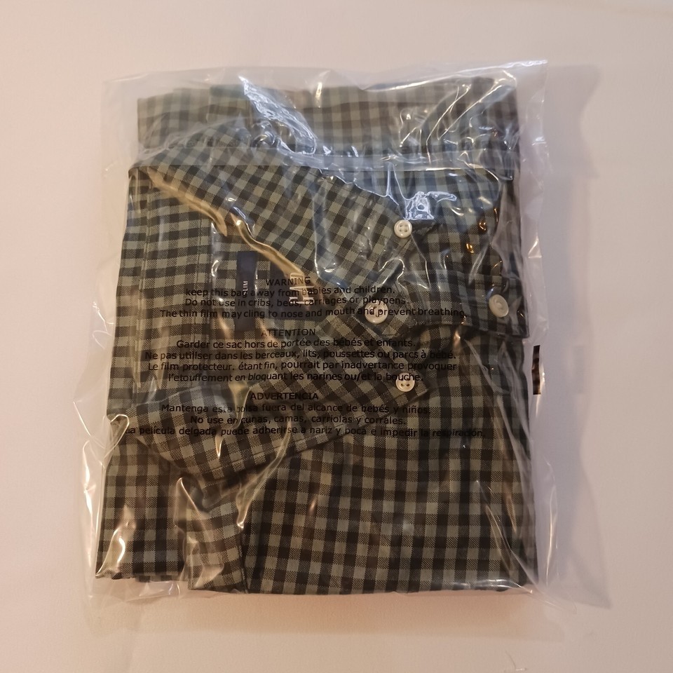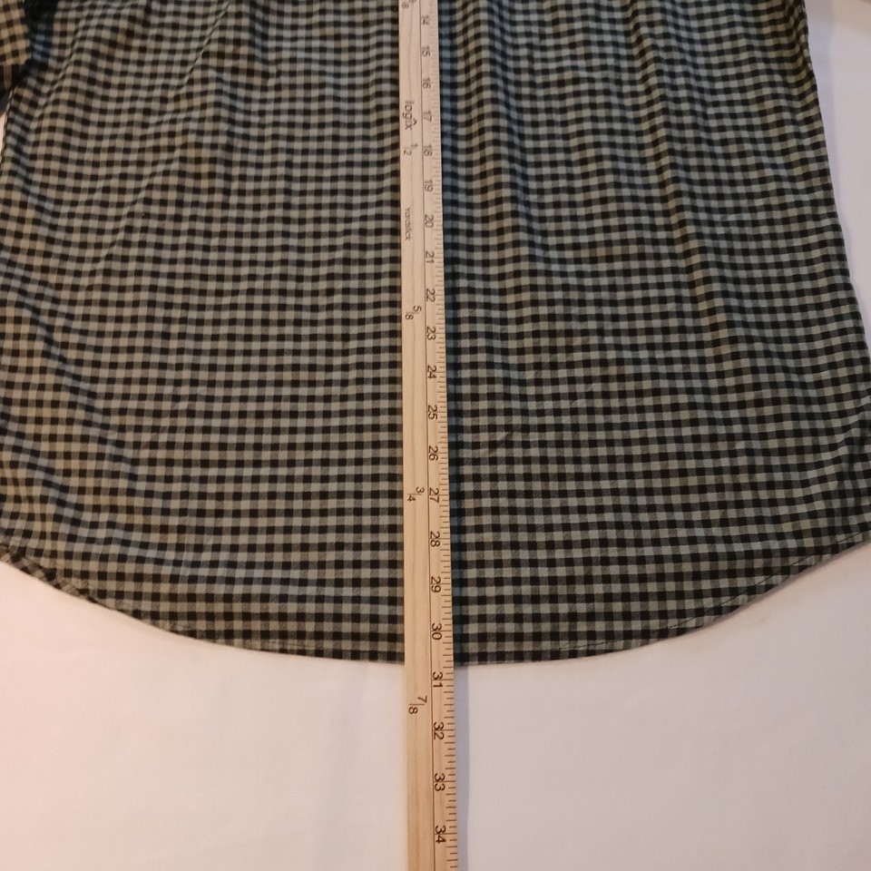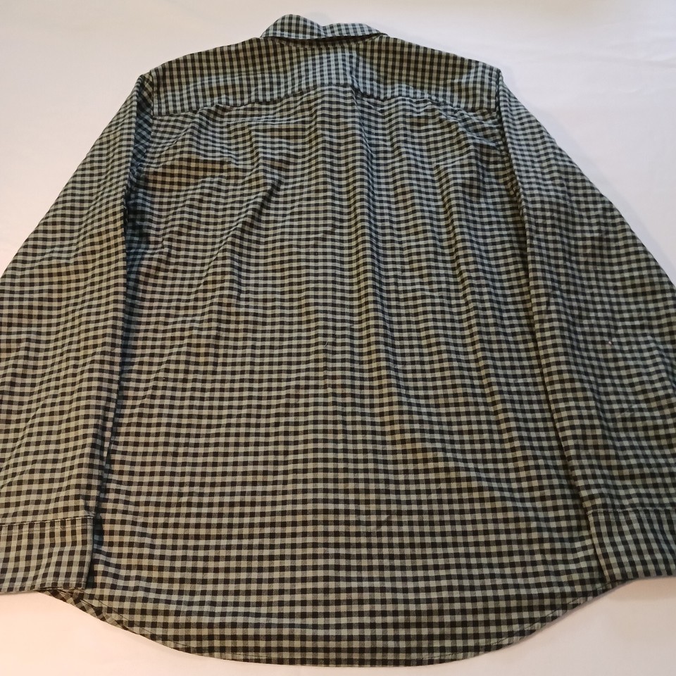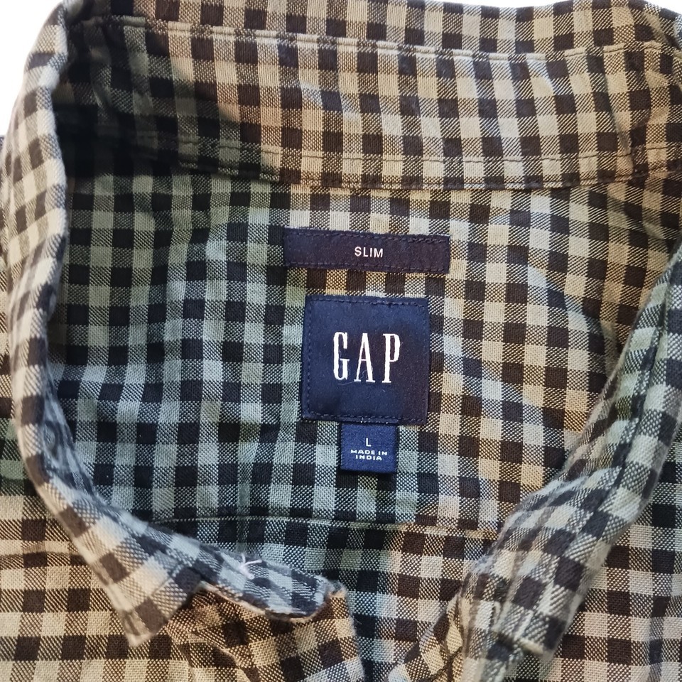 This Gap men's shirt is a classic addition to any wardrobe. The off-white and green plaid pattern brings a touch of style while the cotton material offers comfort. The shirt features a button-down collar, long sleeves, and a chest pocket for added accents. It is available in size L and fits regular size types. This shirt is perfect for any season and can be worn on any occasion.