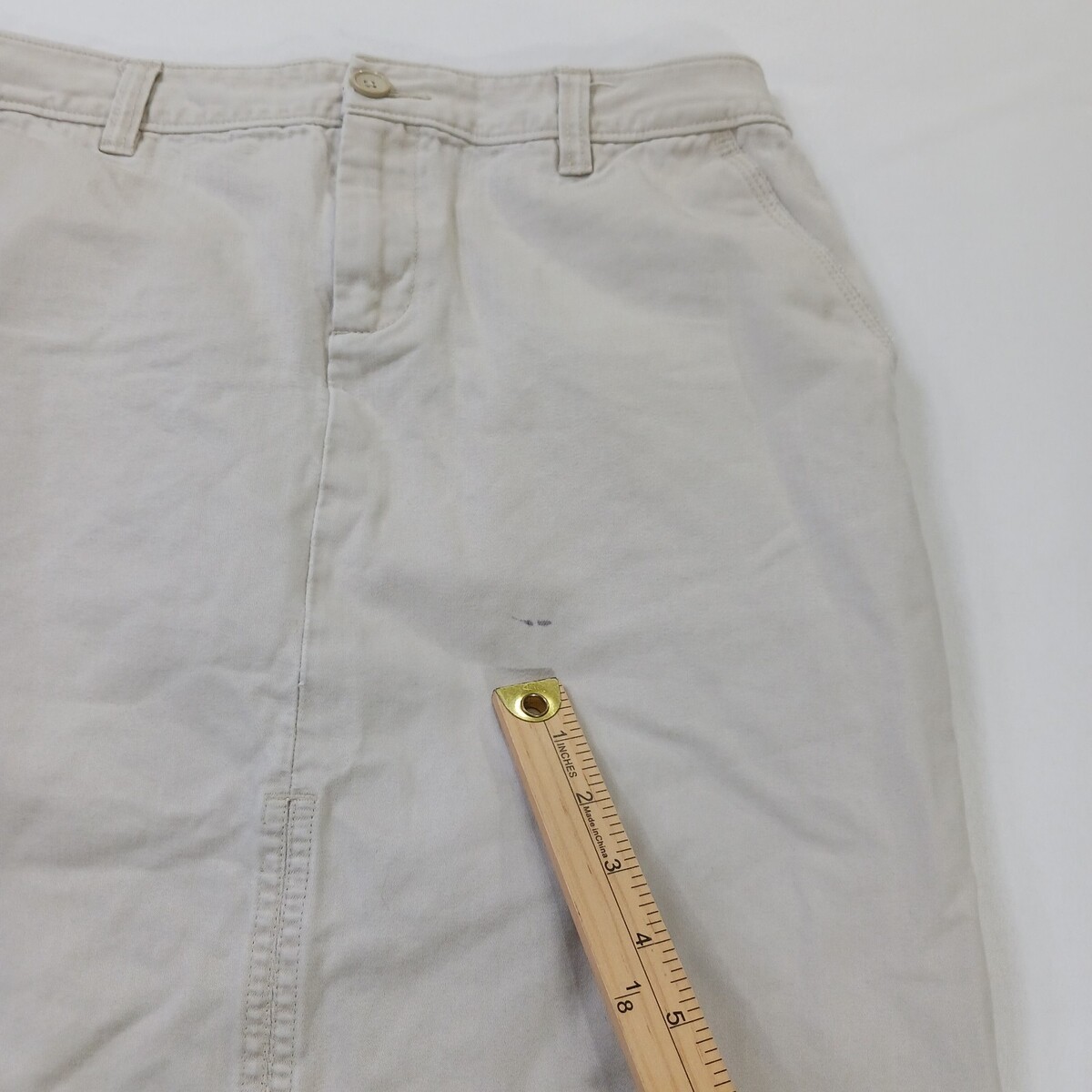 This Gap Women's Beige/Khaki Cotton Denim Skirt in size 6 features a solid pattern and a zipper closure, making it perfect for casual occasions. Made of cotton denim fabric, this straight and pencil style skirt has a short length ideal for a stylish and versatile look. The khaki color adds a touch of versatility to your wardrobe, while the high-quality Gap brand ensures durability and style. Made in India, this regular fit skirt is a must-have for any woman's closet.
