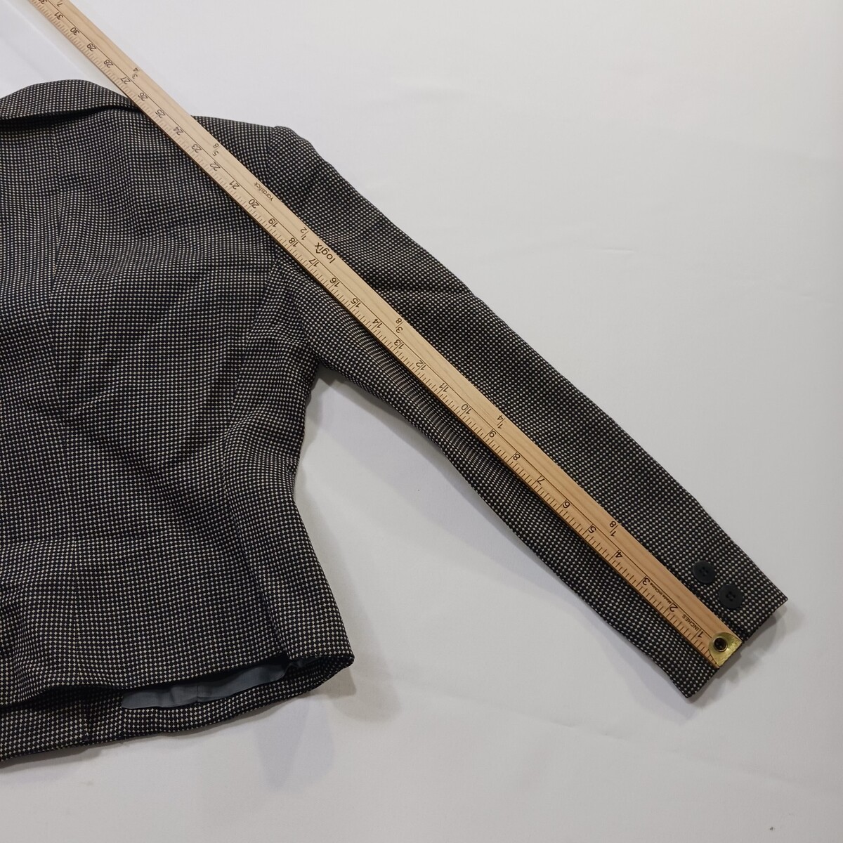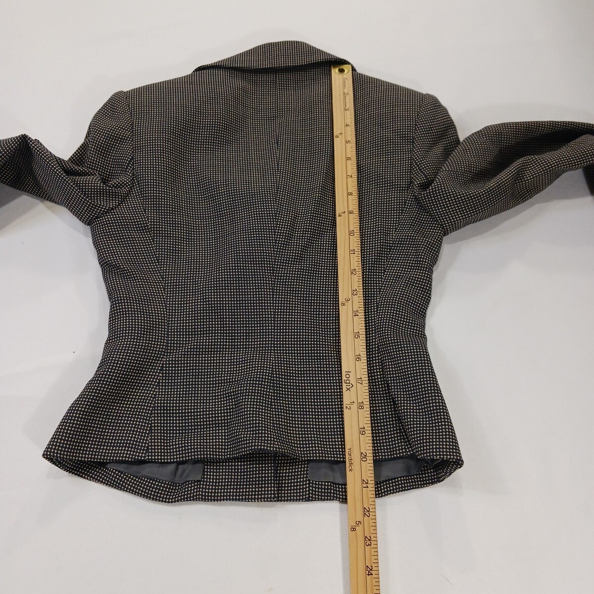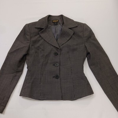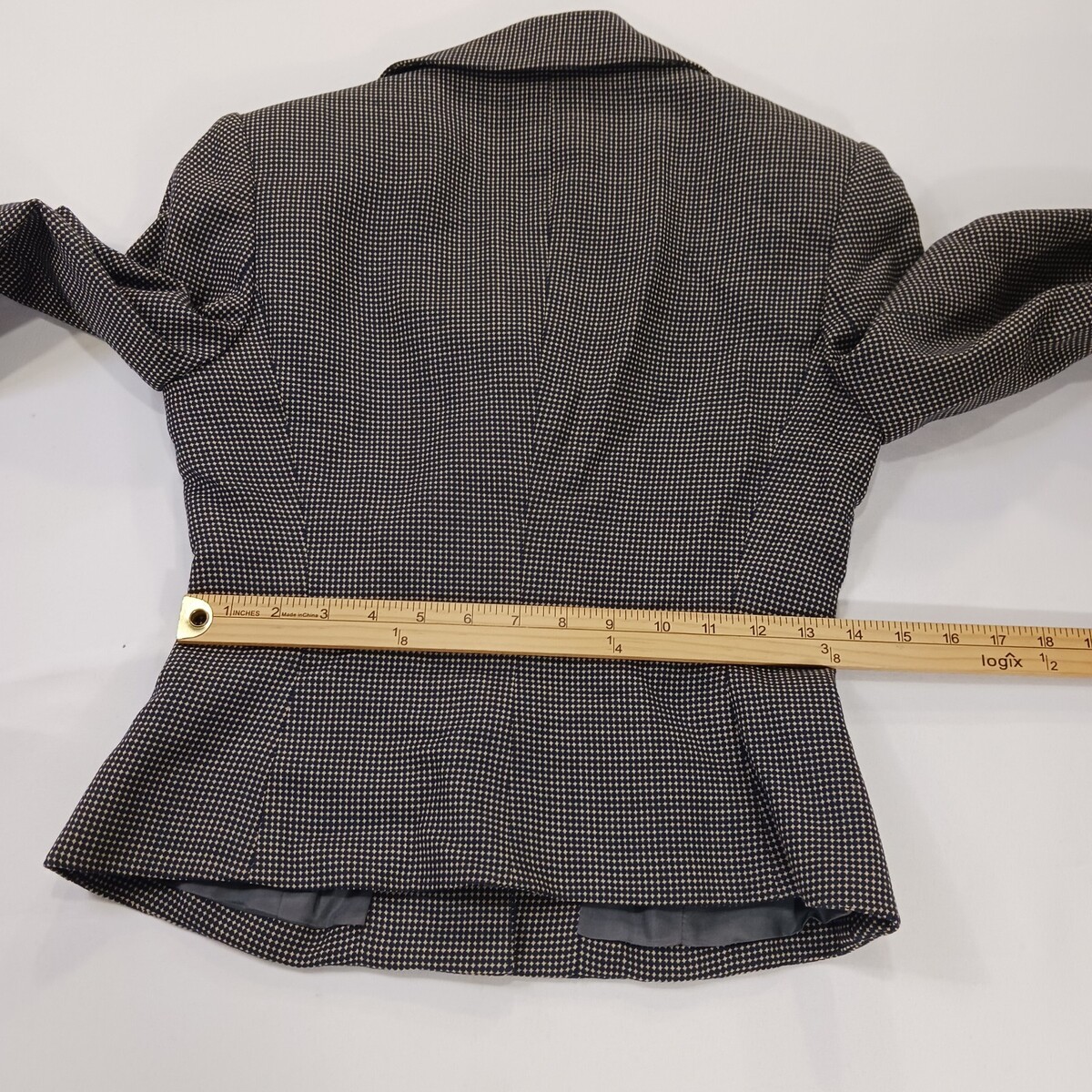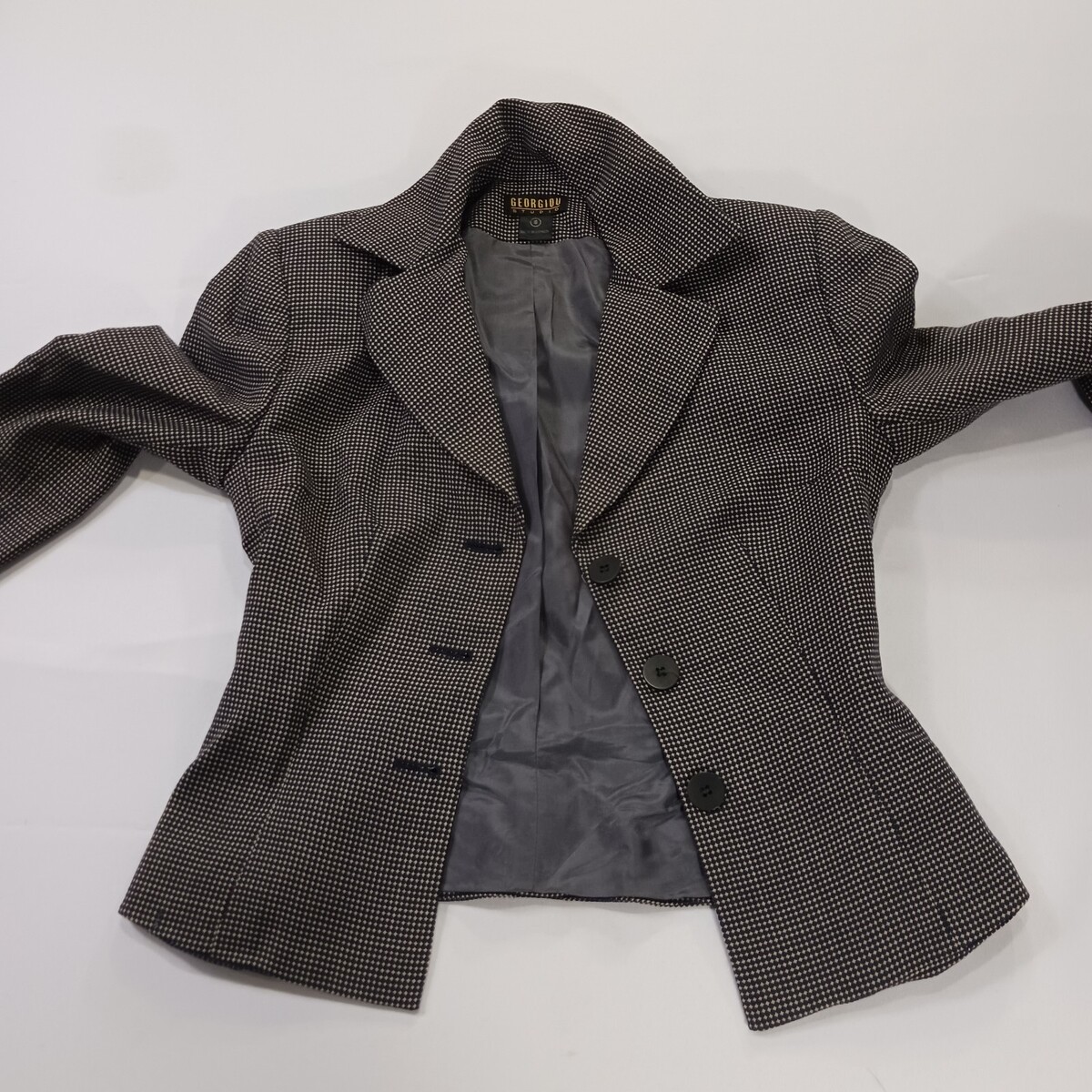 The Georgiou Studio Woman’s Gray 3-Button Collar Wool Blend Blazer Jacket in size 0 is a stylish and versatile outerwear piece perfect for casual or business occasions. Made from a comfortable wool blend with a polyester lining, this mid-length jacket features a plaid pattern, long sleeves, and a button closure. The collared design and pleated accents add a touch of sophistication to this basic jacket from the brand Georgiou, offering a regular fit for a flattering silhouette. Ideal for the modern woman looking for a classic yet trendy statement piece in a neutral gray color.