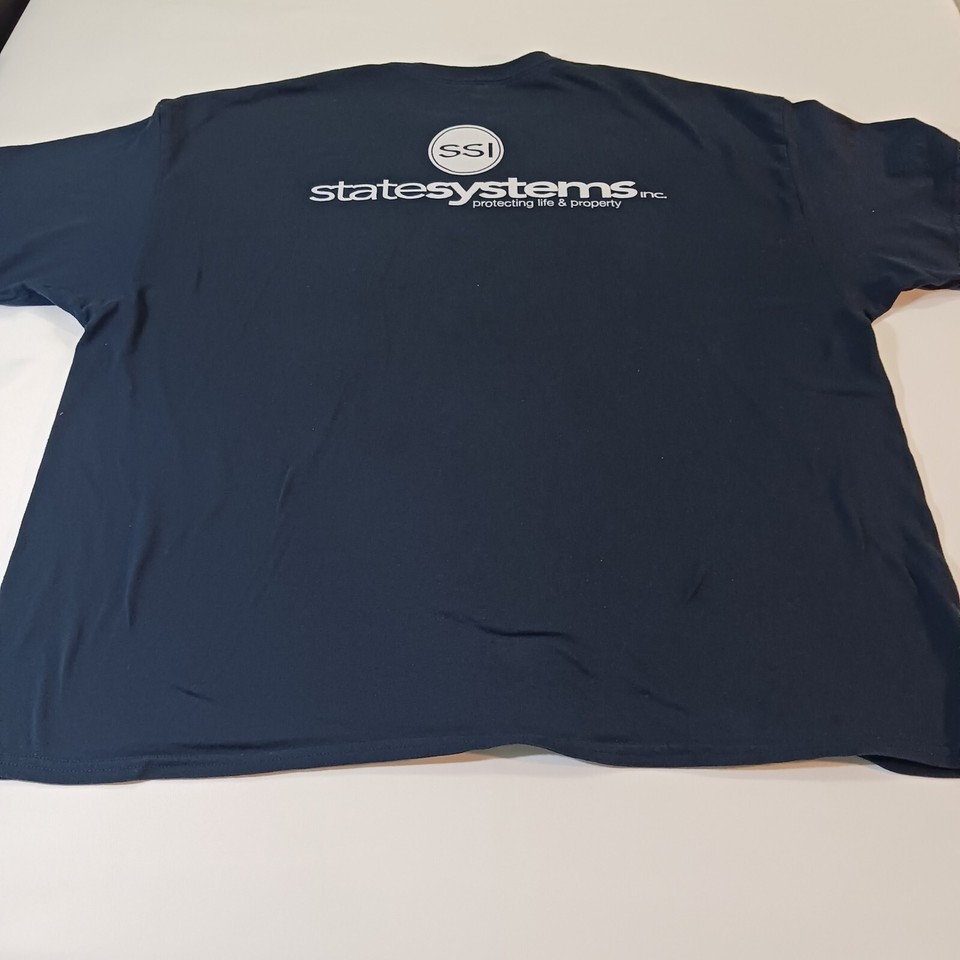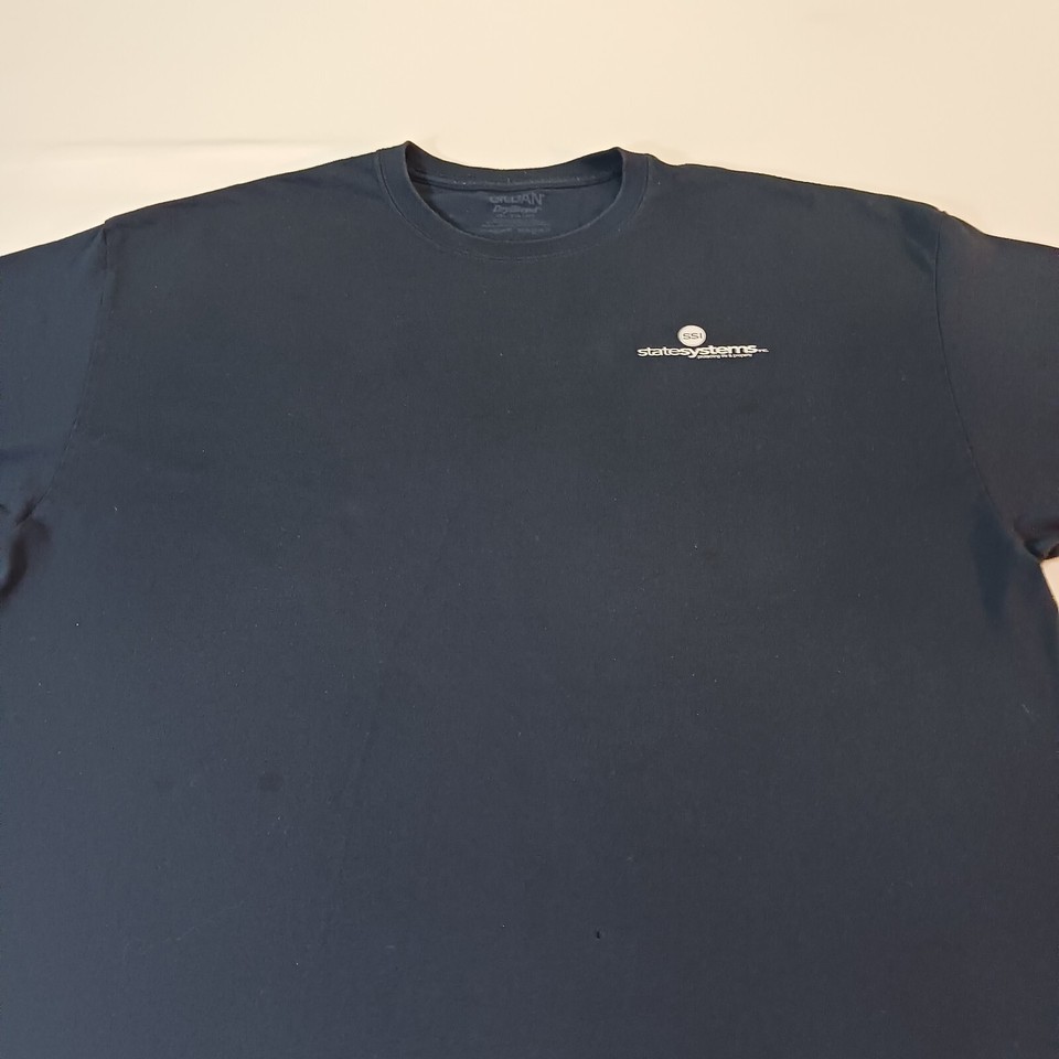 The Gildan Dryblend SSI State System Inc. Men's Blue T-Shirt is a pre-owned garment made of a blend of polyester and cotton. It features a crew neck and short sleeves, with a regular fit and a blue color. The shirt has the SSI logo as an accent and is machine washable. It is available in size 3XL and is part of the Gildan Dryblend product line. This shirt is suitable for summer, fall, and spring seasons and is manufactured in Honduras.