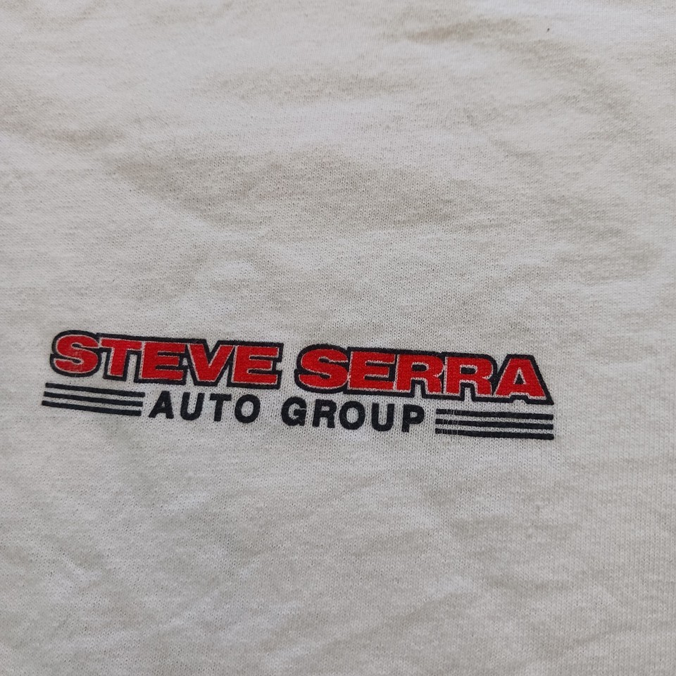 The shirt also includes a cool graphic print of the Steve Serra Auto Group logo, adding a unique touch to the design. The T-Shirt is available in size 3XL, and its regular fit makes it comfortable to wear. It's a great addition to your wardrobe for the summer, fall, or spring seasons. Get this shirt today and show off your love for Steve Serra!
