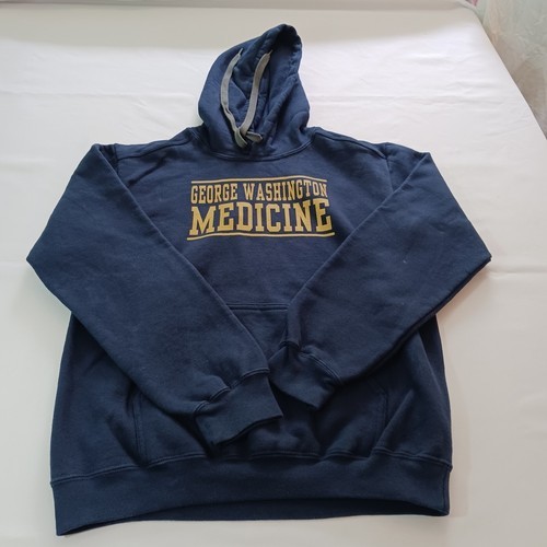 This Gildan Premium George Washington Medecine Men's Pullover Hoodie Sweatshirt in size S is a must-have for any fashion-savvy man. With its drawstring closure and hooded design, this hoodie is both stylish and practical. The blue color and graphic print of the hoodie add a touch of personality to any outfit.
