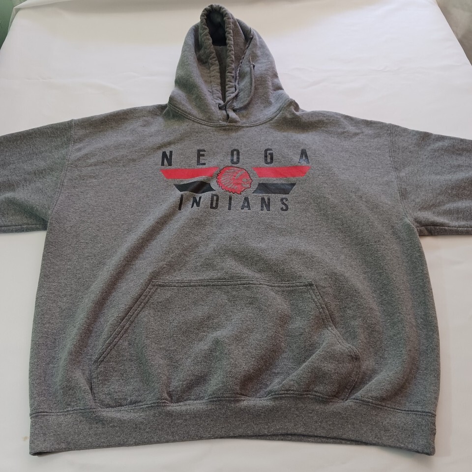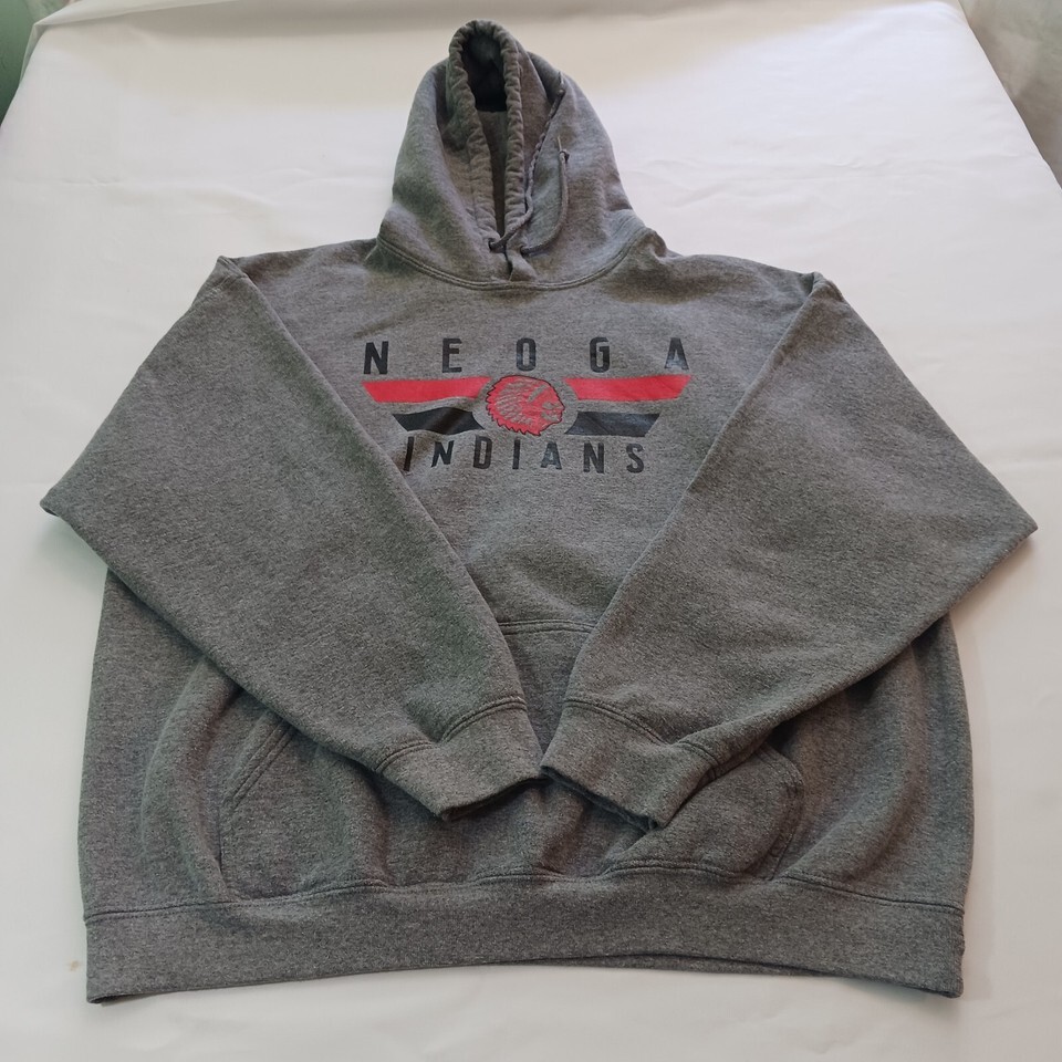 Gildan RN#93846 NEOGA INDIANS Men's Gray Pullover Hoodie Sweatshirt Size XL
