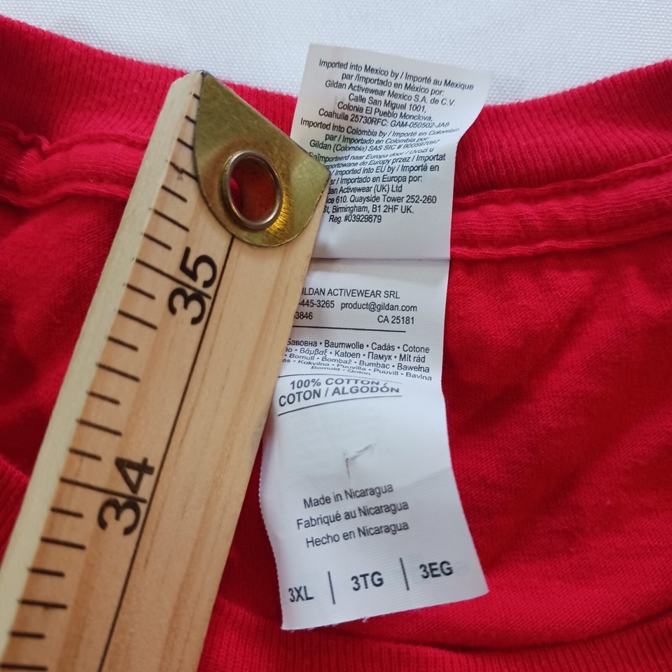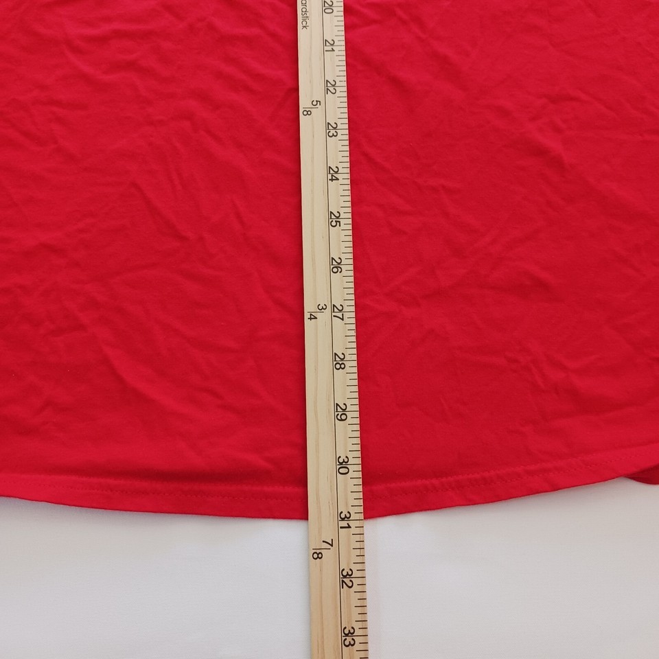 This Gildan Softstyle Highland Serve Team T-Shirt for men in size 3XL is a must-have addition to your wardrobe. The vibrant red color and crew neck style make it perfect for casual outings or even to support your team during a game. Made of soft cotton material, this pre-owned t-shirt is comfortable to wear and easy to maintain.