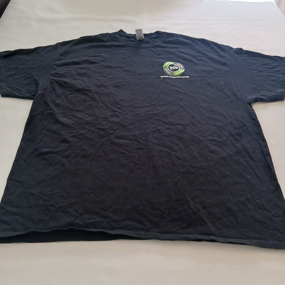 This Gildan Ultra Cotton T-Shirt in size 2XL is perfect for any man looking for a comfortable and stylish addition to their wardrobe. The crew neck and short sleeves make it a great option for everyday wear, while the black color and brown operating system design add a unique touch. Made from 100% cotton, this shirt is sure to keep you comfortable all day long. The shirt is pre-owned but has been well taken care of and is in excellent condition.