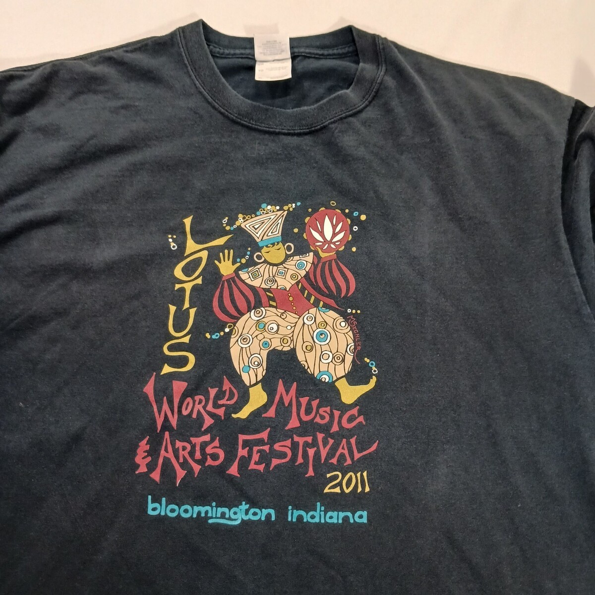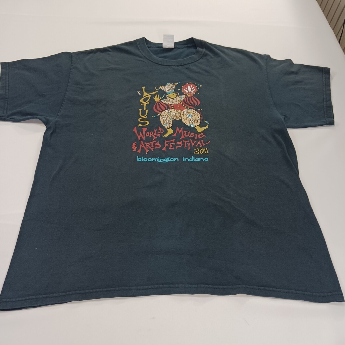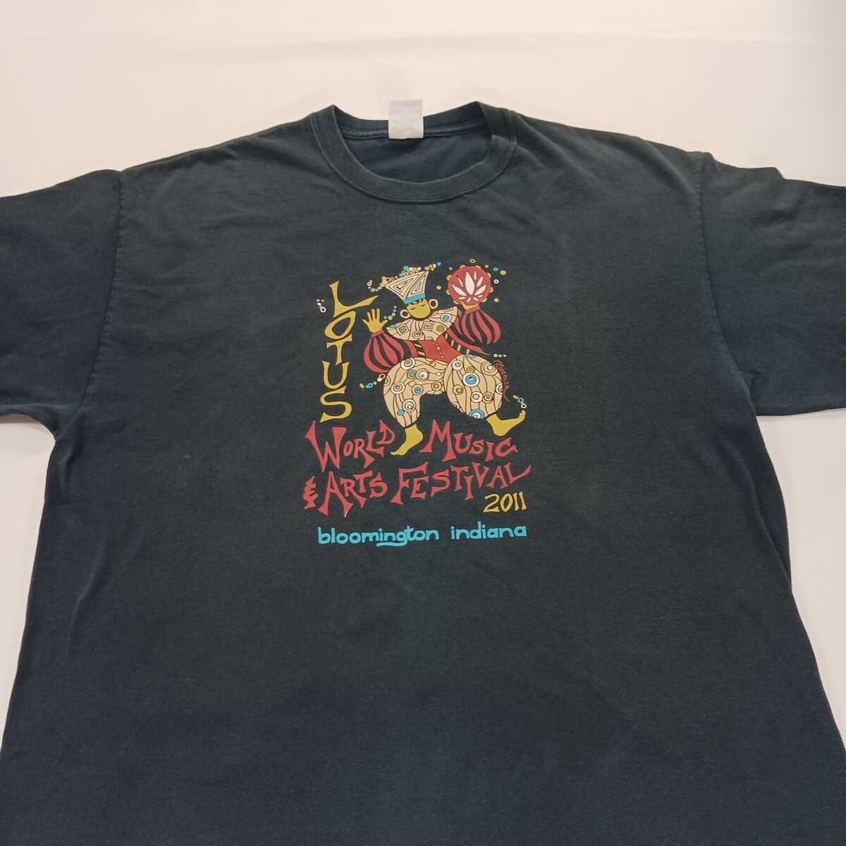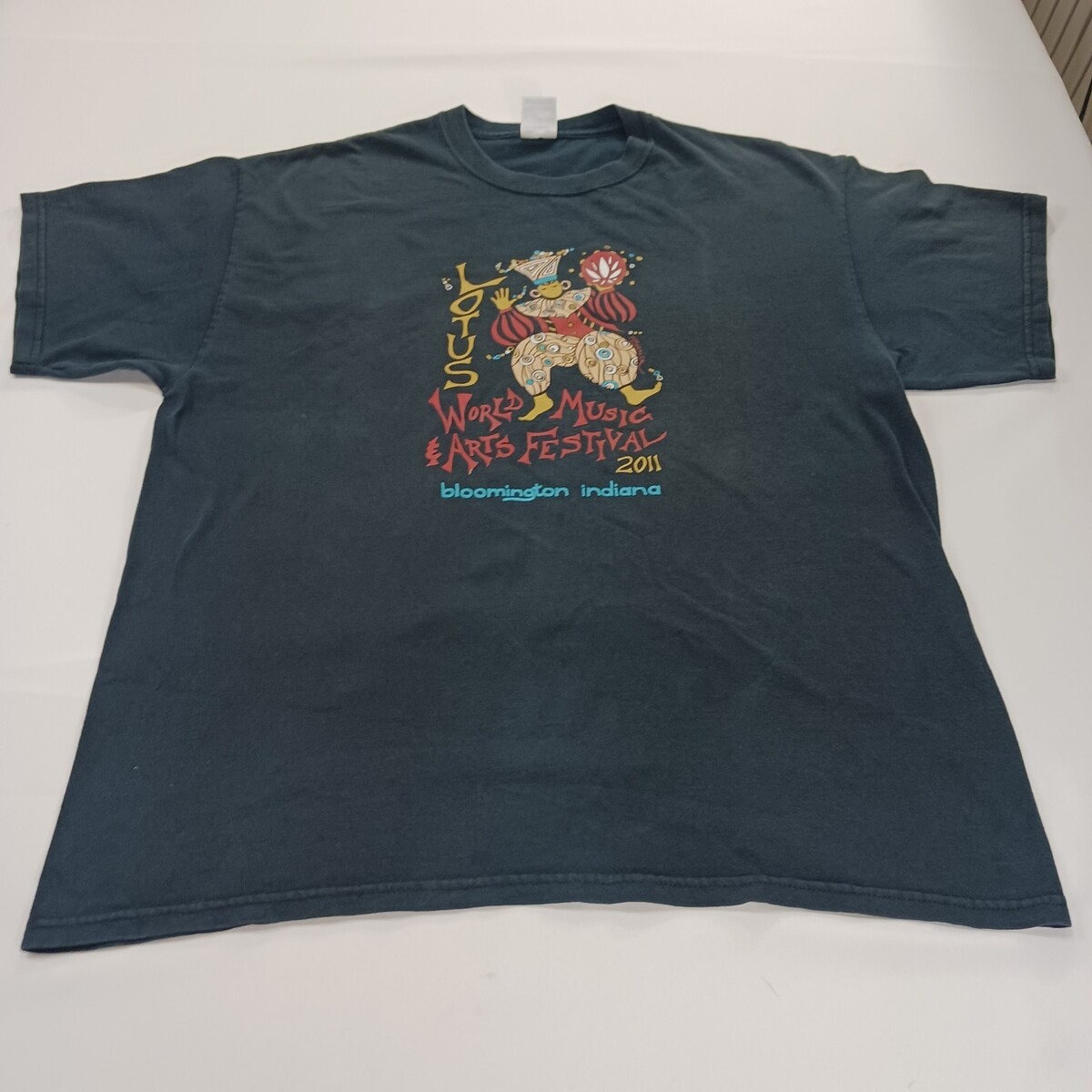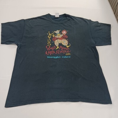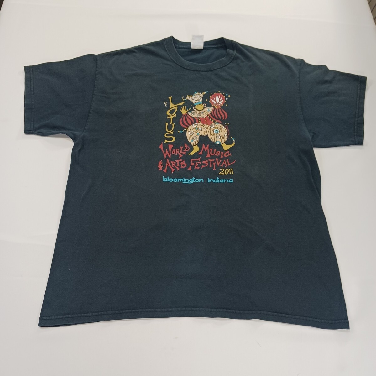 The Gildan Ultra Cotton LOTUS WORLD MUSIC Men's Blue Graphic T-Shirt in size XL is made of soft cotton material and features a solid blue color with a crew neck and long sleeves. The shirt showcases a world music and lotus theme, making it a unique and stylish addition to any man's wardrobe. With its high-quality construction and comfortable fit, this shirt is perfect for casual wear and music enthusiasts.