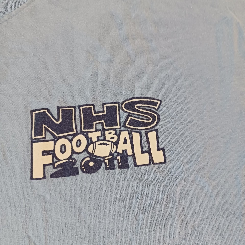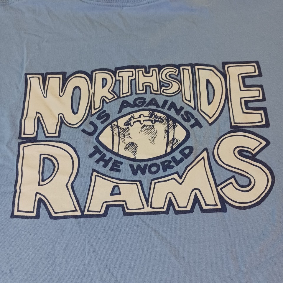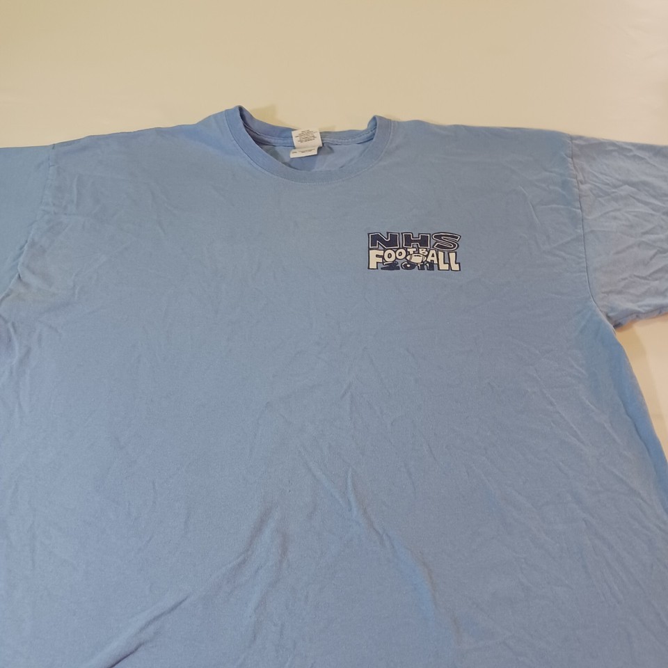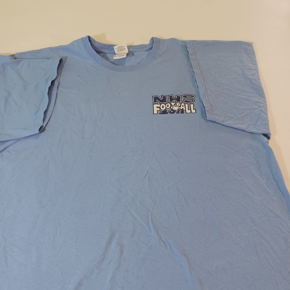 Gildan Ultra Cotton NHS Football 2011 Northside Rams Men's Blue T-Shirt Size 2XL is a pre-owned men's t-shirt made of cotton. It features a crew neckline, short sleeves, and is part of the Gildan Ultra Cotton product line. The shirt is blue and has the Northside and Football themes. It is a regular fit and size 2XL.