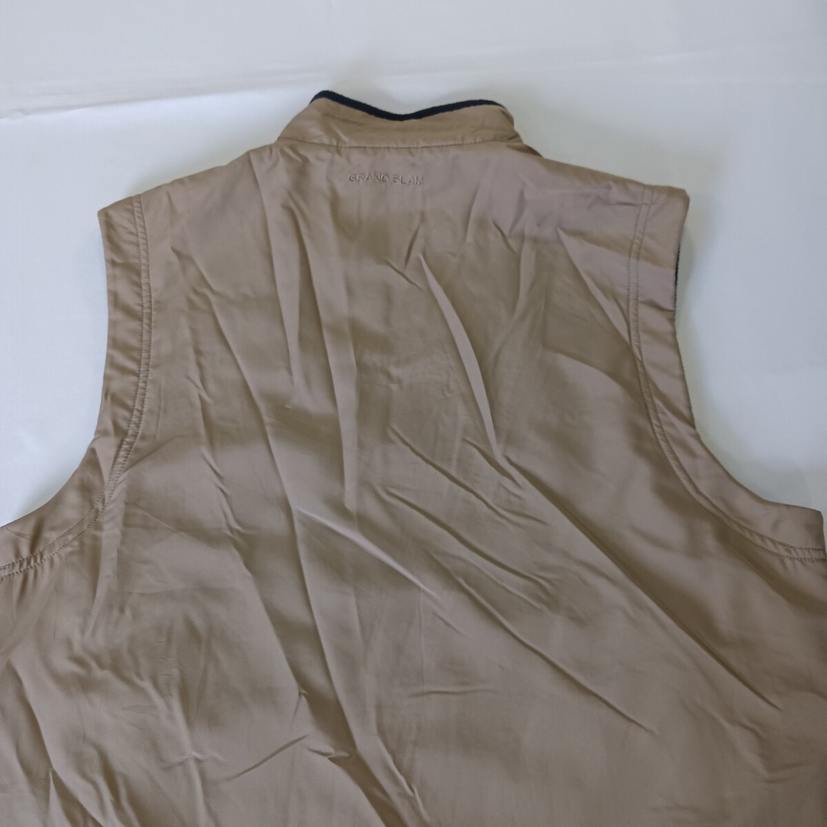The Grand Slam Total Tech Men's Brown/Black Reversible Full Zip Golf/Casual Vest in size M is a versatile and stylish outerwear piece suitable for various occasions. Made from durable polyester material, this vest features a solid brown color with a stand-up collar and a full zip closure. The reversible design allows for two different outfits, making it perfect for travel, casual wear, walking, or golfing. With wind-resistant and water-resistant properties, this vest offers protection for all seasons and comes with convenient zipped pockets for added functionality. Its sleek and modern design, along with the Grand Slam logo accents, make this vest a practical and fashionable choice for men on the go.