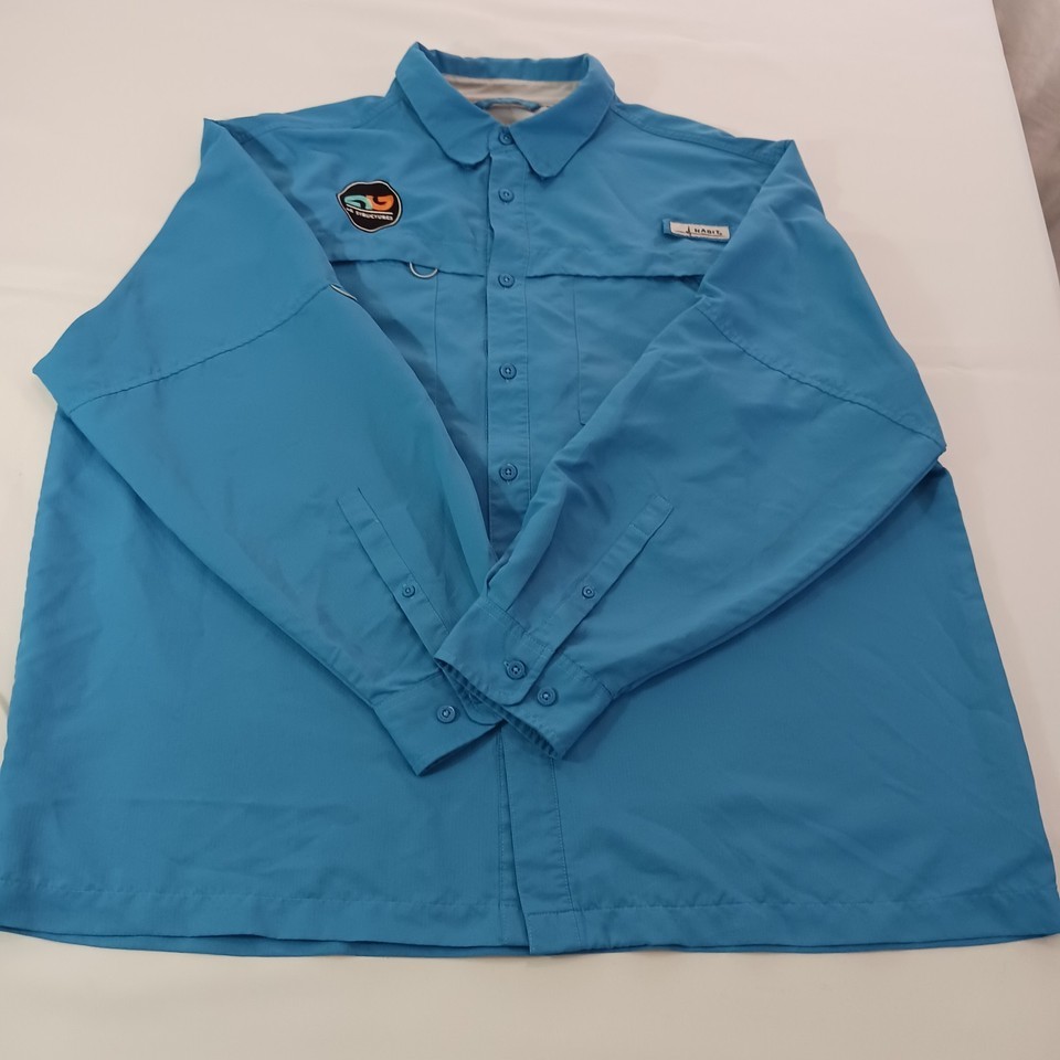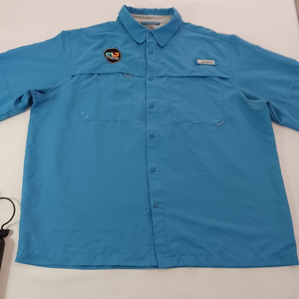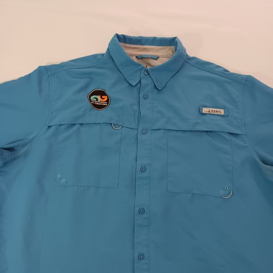 The Habit AG STRUCTURE TS10296 Men's 2XL Blue Outdoor Fishing Long Sleeve Shirt is a stylish and functional button-up shirt perfect for the outdoor enthusiast. Made with UV protection, breathable fabric, and a relaxed fit, this shirt is ideal for casual occasions during the summer, fall, and spring seasons. The collared neckline with a point collar style adds a touch of sophistication, while the solid blue color and fishing-themed accents make it a great choice for the fisherman in your life. Machine washable and crafted with quality materials like polyester, this shirt is a must-have for any wardrobe.