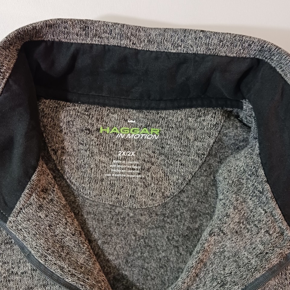 Elevate your activewear game with this Haggar in Motion Men's 1/4 Zip Long Sleeve Pullover Sweatshirt in size 2X. The sweatshirt features a collared neckline with a zip closure and accents with a zipper. It is made of polyester knit fabric, which makes it machine washable and perfect for winter, fall, and spring seasons.