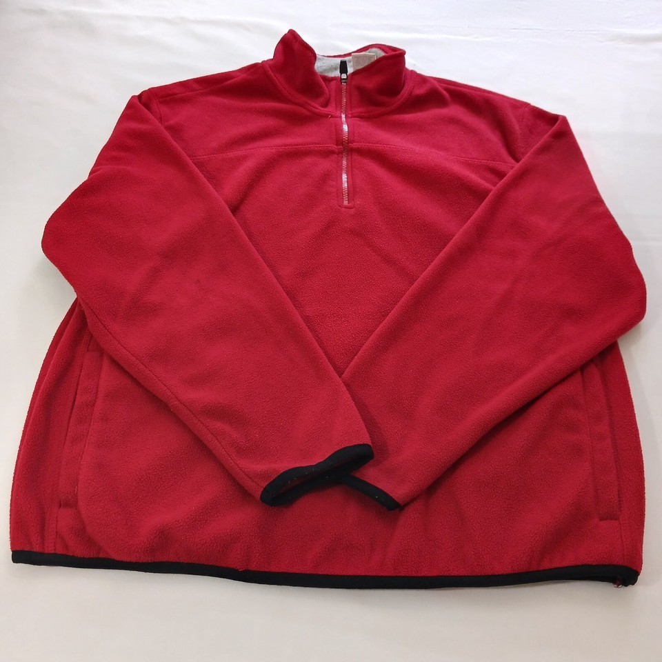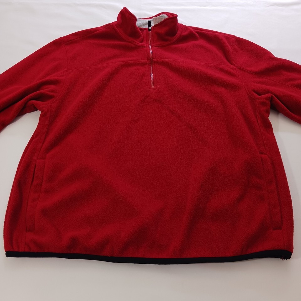 This Hanes HN470100 Men's Red 1/4 Zip Pullover Sweater is a classic addition to any wardrobe. Made from comfortable and breathable cotton fleece material, it features a solid pattern with a crew neck and long sleeves. The pullover closure makes it easy to wear, and it comes in a size L with a classic fit.