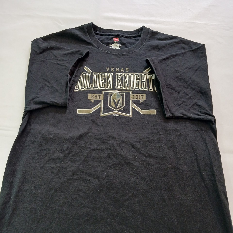 Show off your love for the Vegas Golden Knights with this Hanes black graphic T-shirt. Made from pre-shrunk cotton, this regular fit T-shirt features short sleeves and a bold print of the team's logo. It's perfect for any hockey fan who wants to show their support for the team.