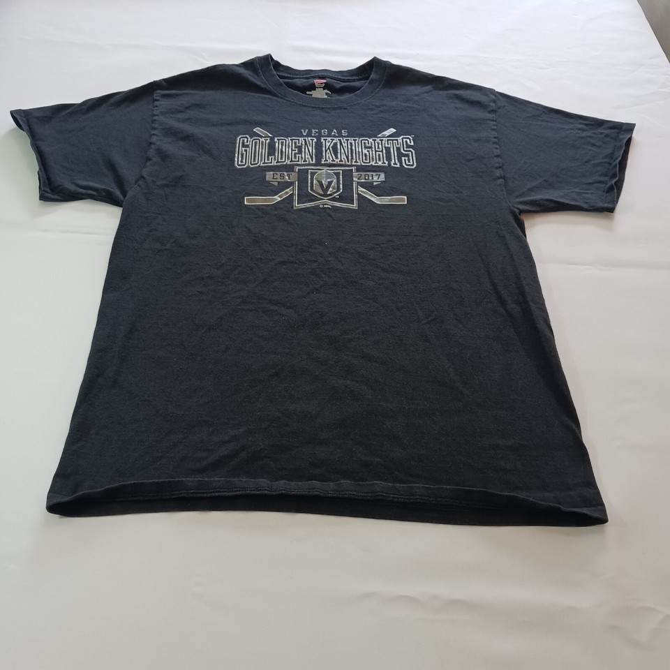 This T-shirt is available in size L and is suitable for men. It's a great addition to any wardrobe and can be worn for casual outings or to cheer on the Vegas Golden Knights at the next game. Get your hands on this officially licensed Hanes T-shirt and show your love for the Vegas Golden Knights in style!