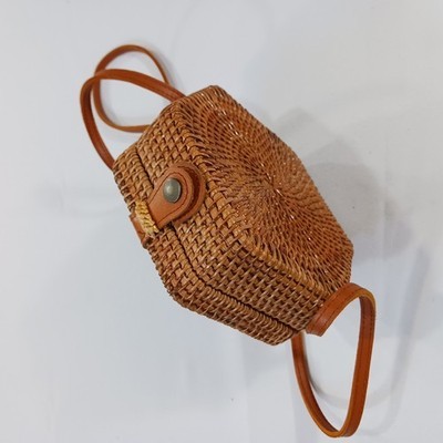 • Hexagonal Shaped Natural Handwoven Rattan Lady Women's Bag  image 11