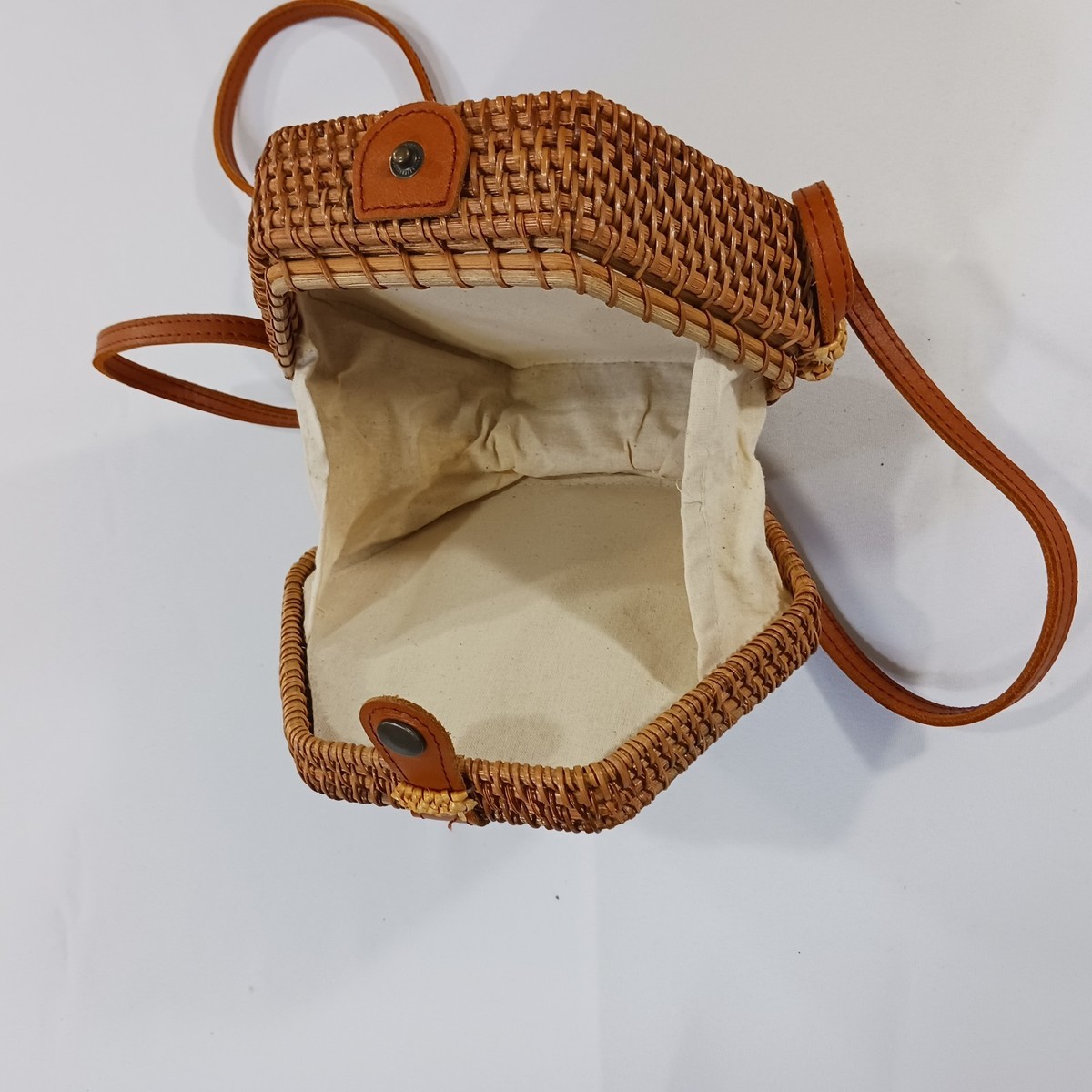 • Hexagonal Shaped Natural Handwoven Rattan Lady Women's Bag  image 10