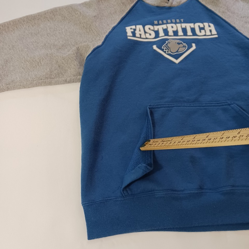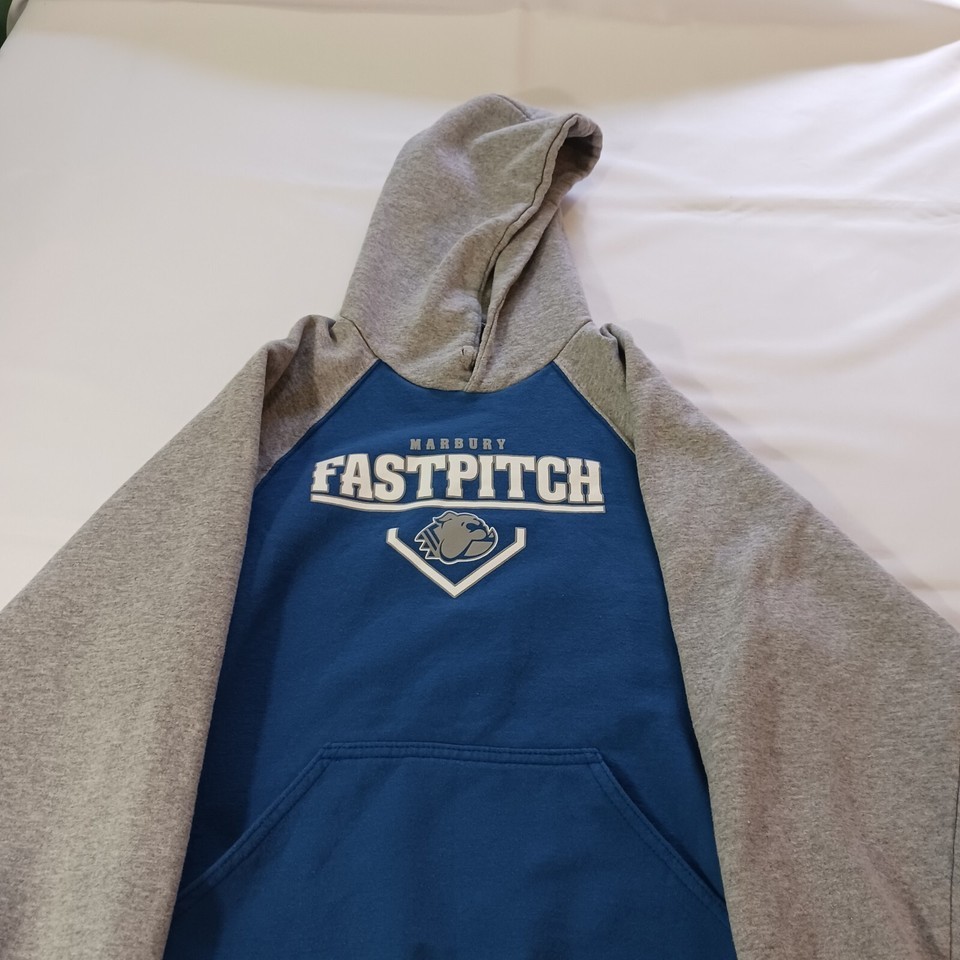 This Holloway Marbury Fastpitch hoodie sweatshirt is the perfect addition to any man's wardrobe. The blue and gray color combination is both stylish and versatile, making it suitable for any occasion. The full zip closure ensures a comfortable and secure fit, while the long sleeves provide warmth during cooler weather.