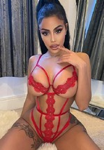 • Hot Persistence Applique Red Teddy W/ Open Underwire Cups & Adjustable Straps- M image 1